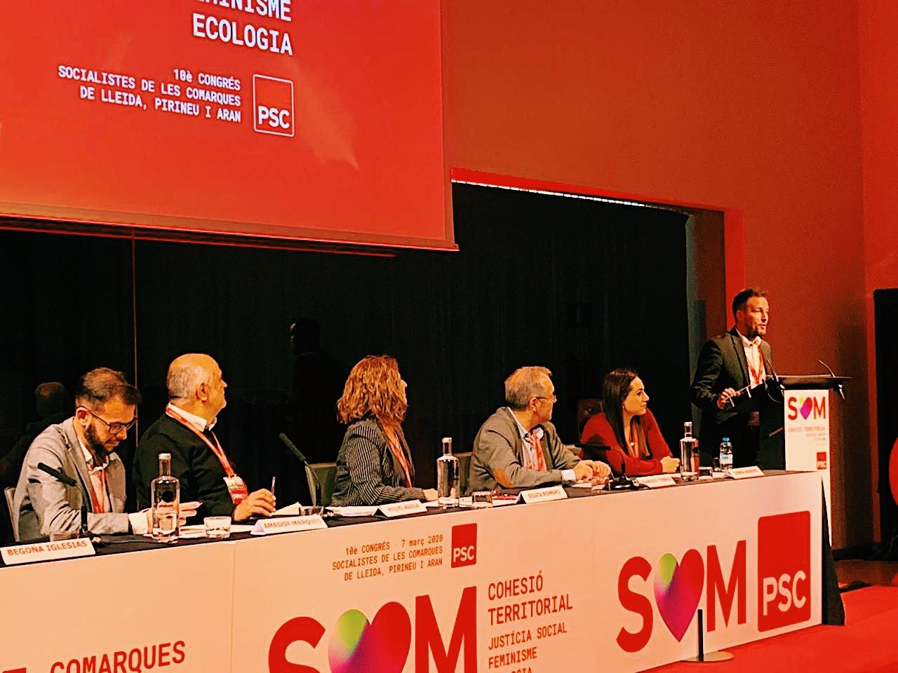 El president del grup parlamentari socialdemòcrata, Pere López, acompanyat de la presidenta, Susanna Vela, i del secretari d’organització del PS, Pere Baró, ha participat aquest cap de setmana al 10è Congrés del PSC de les comarques de Lleida, Pirineu i Aran, on ha apel·lat al rol de la socialdemòcracia europea per fer front al creixement de l’extrema dreta.
