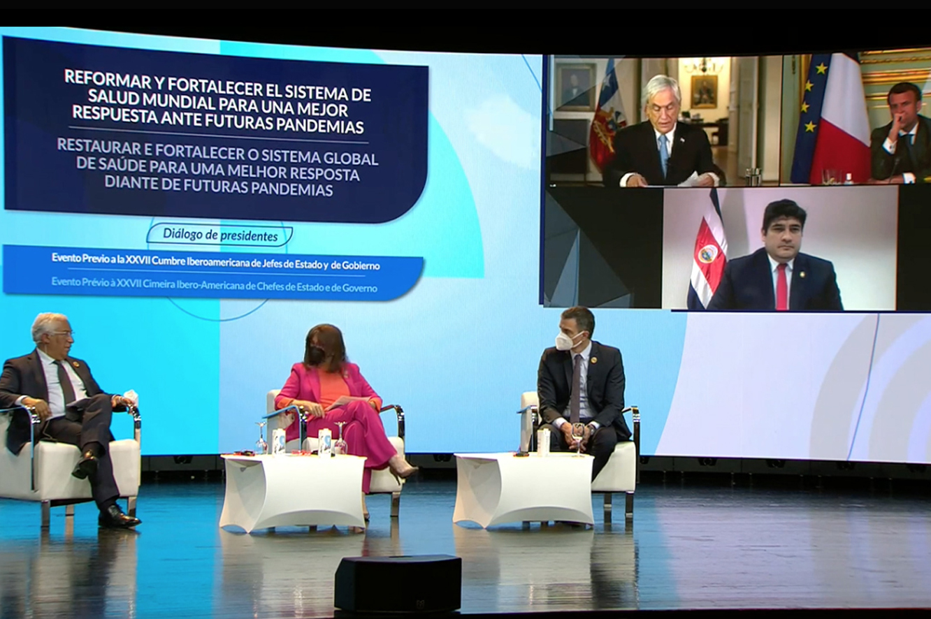 Els màxims responsables dels governs d’Andorra, Espanya, França, Portugal, Costa Rica i Xile van participar en el panel Reformar i enfortir el sistema de salut mundial per a una millor resposta davant futures pandèmies, un acte paral·lel i previ a la Cimera Iberoamericana que persegueix crear un nou acord internacional davant possibles noves pandèmies.