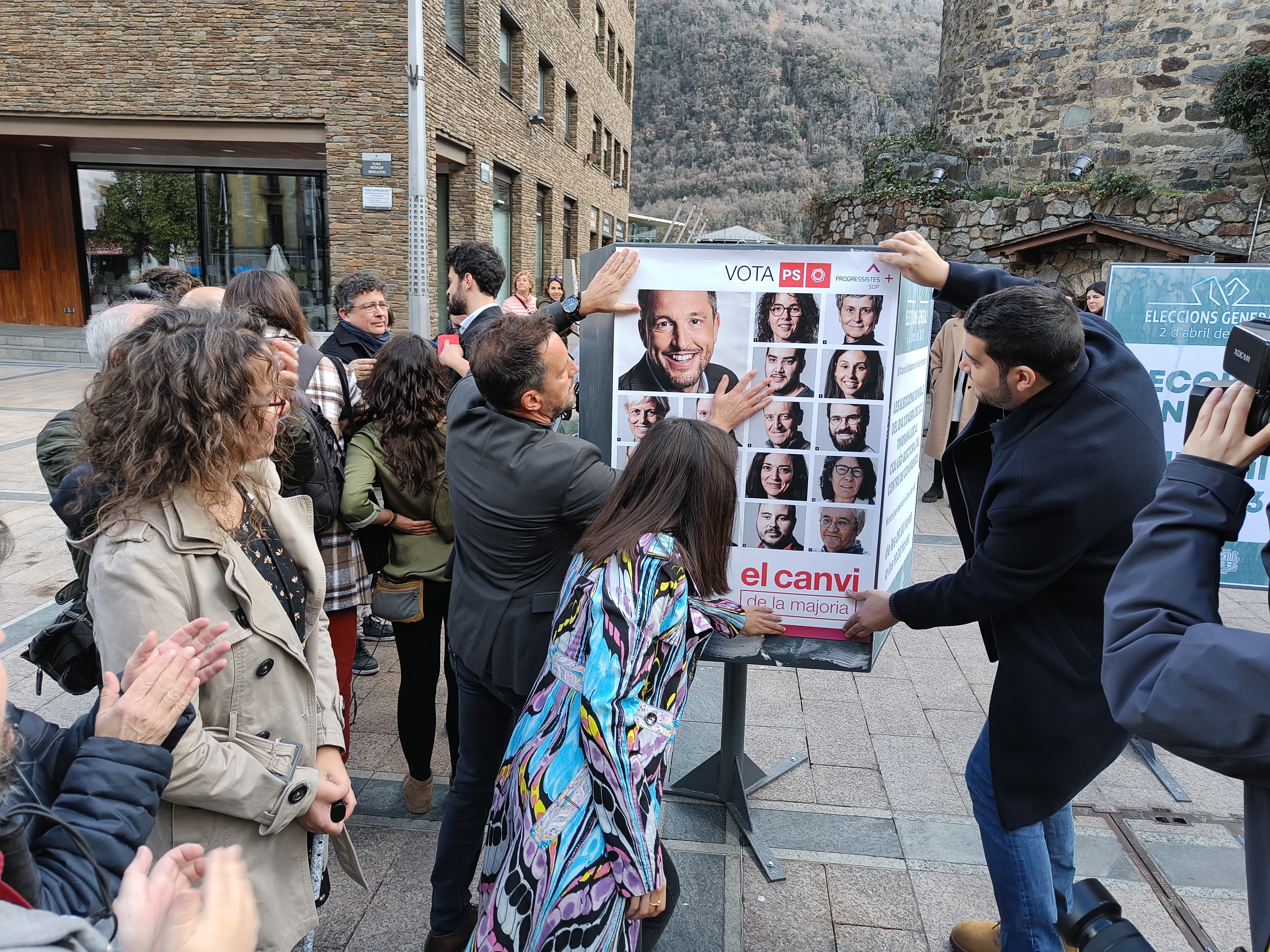 L’aliança socialdemòcrata formada per PS i Progressistes-SDP ha donat el tret de sortida a la campanya electoral amb l’enganxada de cartells a la capital. Amb canvi d’ubicació d’última hora, això sí, passant de la plaça Rebés a la plaça Príncep Benlloch. Uns pocs metres que han comportat que en comptes de compartir espai amb l’Andorra Endavant de Carine Montaner, ho fessin amb una nodrida representació de la Concòrdia liderada per Cerni Escalé.