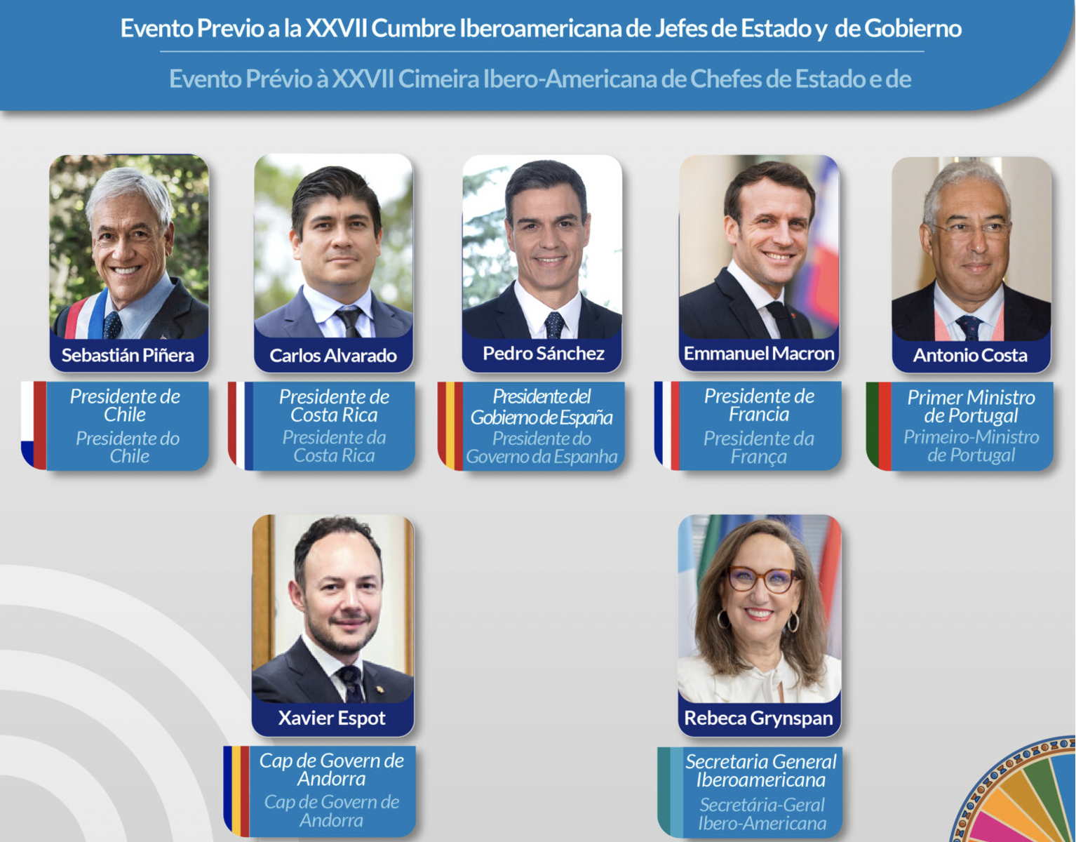 L'esdeveniment se celebrarà en format semipresencial, serà moderat per la secretària general Iberoamericana, Rebeca Grynspan, i comptarà amb un discurs inaugural del cap de Govern, Xavier Espot. En la reunió participaran presencialment mandataris d'alt nivell com el president del govern d'Espanya, Pedro Sánchez, i el primer ministre portuguès, António Costa. El president de la República francesa, Emmanuel Macron, i els presidents de Costa Rica, Carlos Alvarado, i Xile, Sebastián Piñeira, s’hi sumaran de manera virtual.