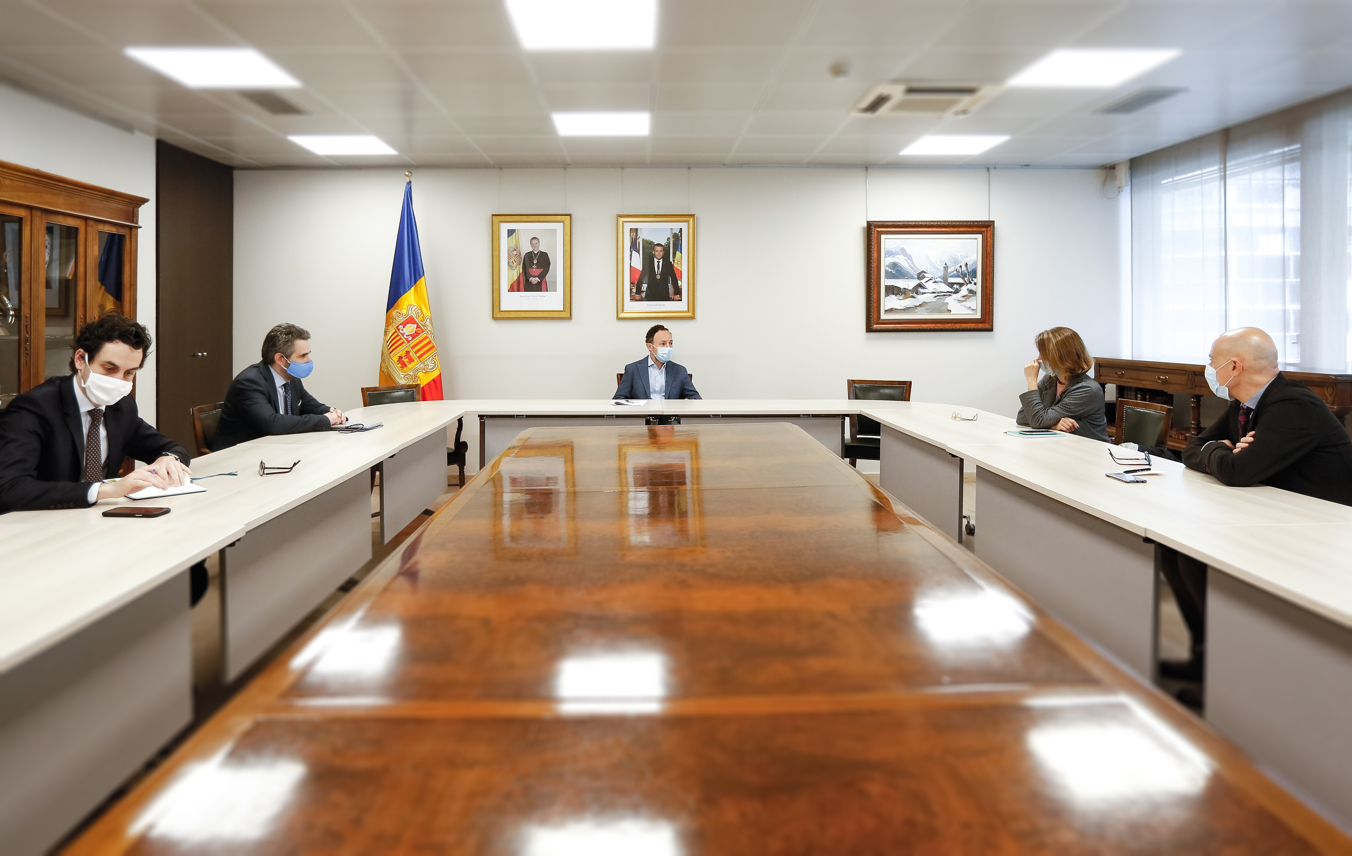 El cap de Govern, Xavier Espot, i el ministre de Finances, Eric Jover, han mantingut una trobada aquest dijous amb el cònsol major de Sant Julià de Lòria, Josep Majoral, i la cònsol menor, Mireia Codina, per tractar la contribució del Comú a les mesures governamentals per pal·liar els efectes de la Covid-19. Espot i Jover també s’han reunit avui mateix amb la cònsol major d’Escaldes-Engordany, Rosa Gili, i el cònsol menor, Joaquim Dolsa.