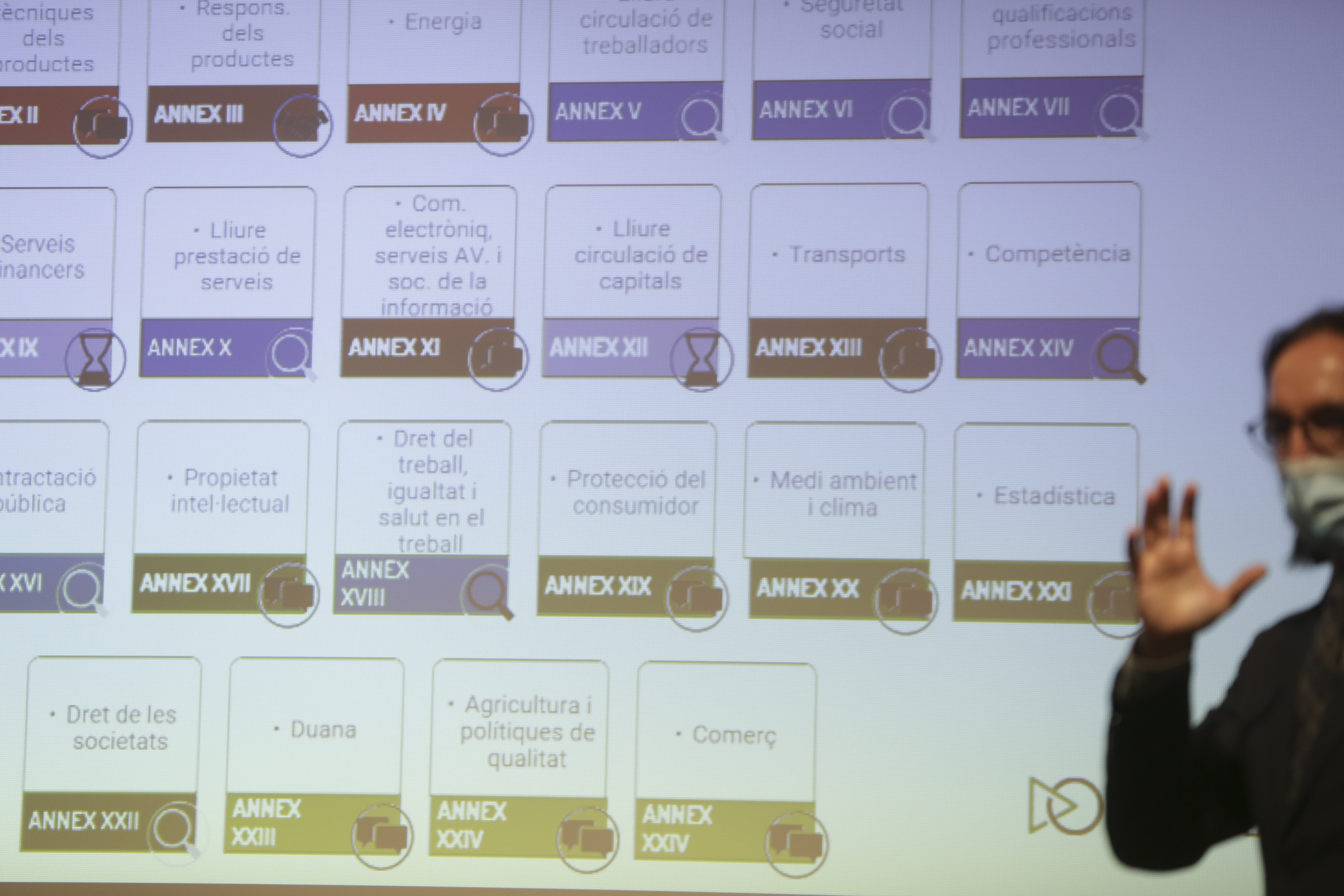 I és que malgrat que s’està treballant de manera simultània en 22 dels 25 annexos que conformen l’acord, fet que suposa que fins a “un 80% del cabal comunitari ja està sobre la taula de negociació”, acordat només n’hi ha un i dos més, els corresponents als serveis financers i a la lliure circulació de capitals, ni tan sols s’han començat a tractar en espera que des de la UE es trameti el llistat de normativa que suposen.