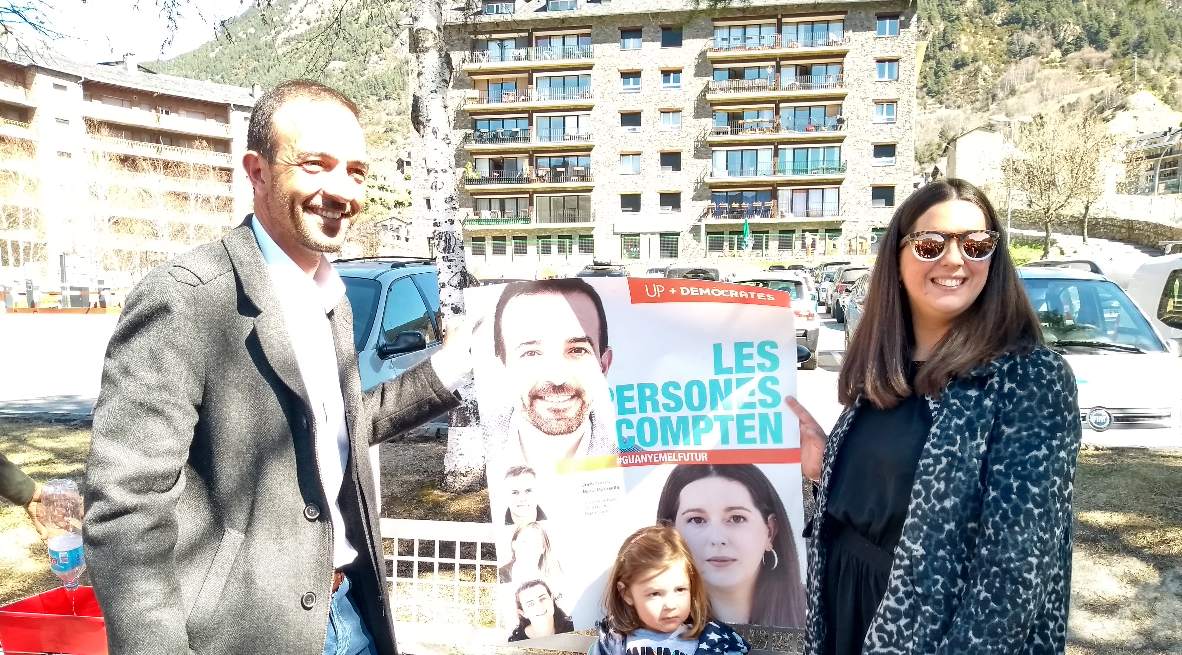 Els segons a acudir a la penjada de cartells van ser Jordi Torres i Maria Martisella, de DA, que van ser rebuts amb forts aplaudiments dels companys de la llista parroquial i de la nacional. Torres va manifestar que espera que els pròxims 15 dies tingui lloc “una campanya de confrontació d’idees”. El candidat taronja va destacar la part social del programa de DA i va dir que “ja hem posat les bases i hem de desenvolupar tot el programa social i treballar per les persones”.