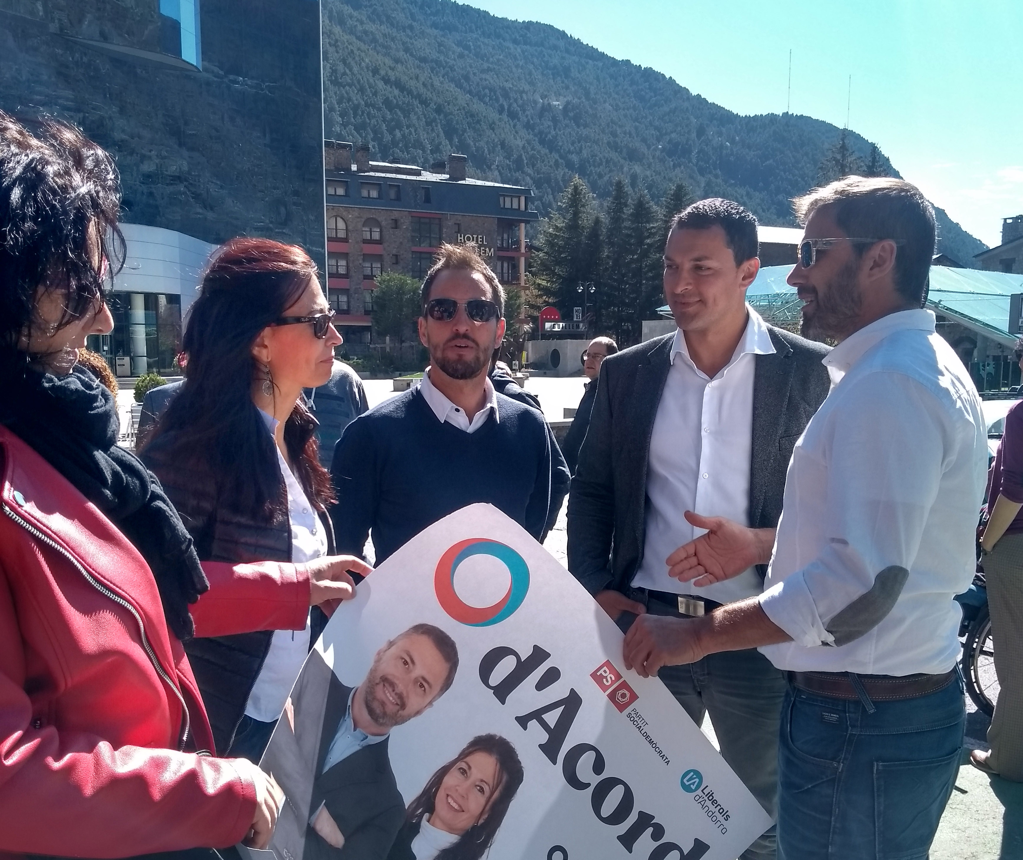 Els darrers a completar el panell de cartells van ser els candidats de d’Acord. El socialdemòcrata David Rios va remarcar que el seu “és el vot útil per si algú vol revertir la situació actual i dels darrers vuit anys”, i les propostes que fa per a la parròquia giren entorn “la cultura, que pot ser el nexe d’unió per potenciar Encamp com a objectiu perquè vinguin més visitants”, va comentar. Pel que fa al Pas de la Casa, Rios va remarcar que “volem que sigui una vila amb la categoria que ha de tenir pel pes econòmic que té al país”, va defensar.