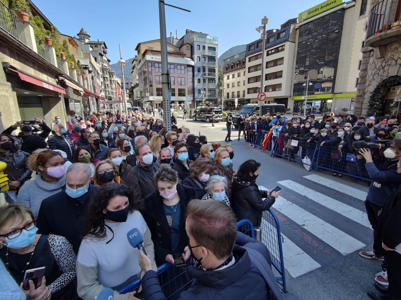 A la sortida del Comú, i trencant el protocol previst, igual com també va fer Macron en la seva visita, Felip VI i la reina Letizia s'han acostat a la confluència de Príncep Benlloch amb la plaça Rebés on un centenar de residents espanyols s’havien concentrat per poder veure els monarques, a qui han aplaudit i victorejat amb crits de “viva el rei”, “viva la reina”, i “viva Espanya i viva Andorra”.