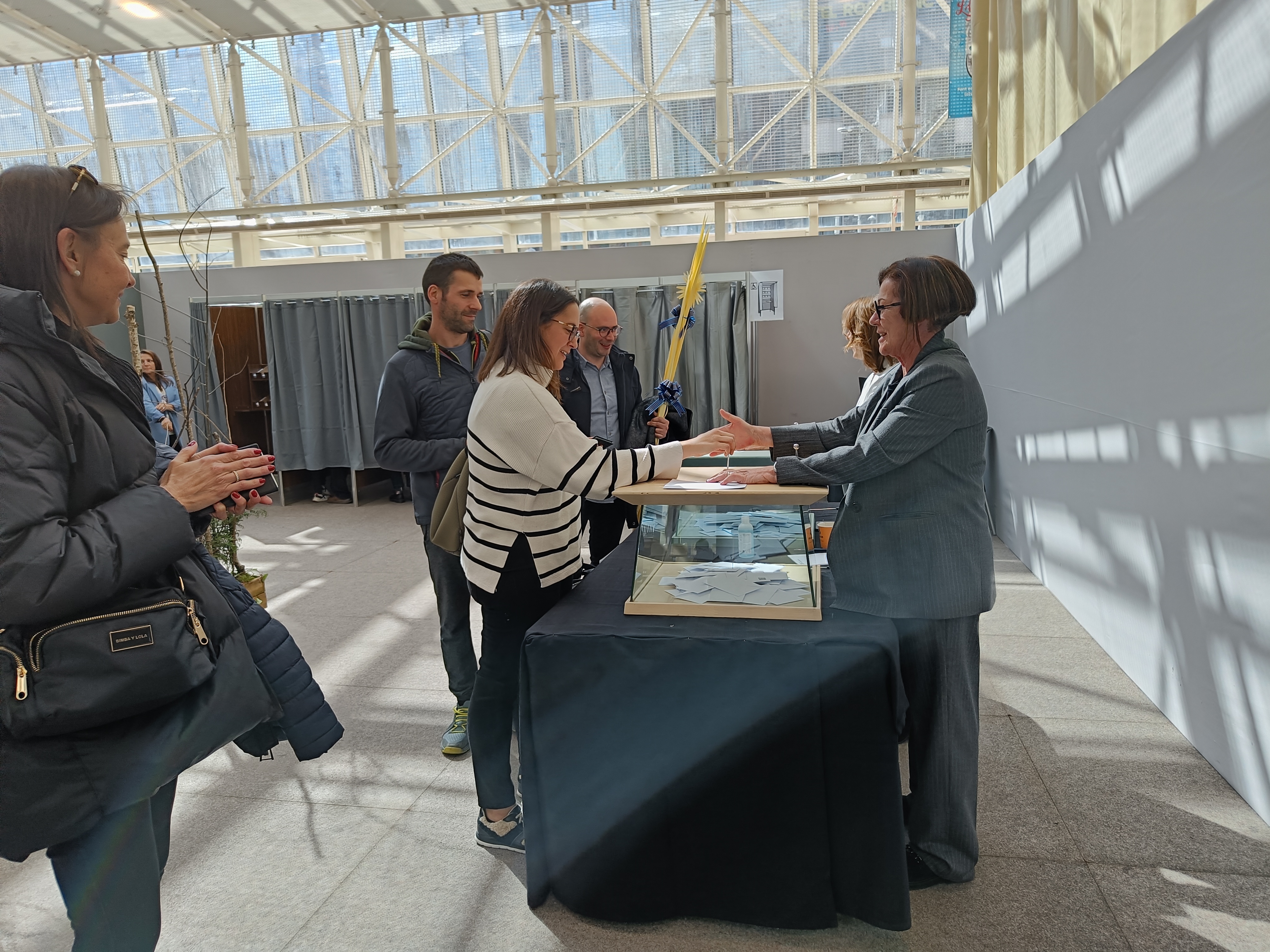 Les ganes de votar eren palpables i poc minuts després de les 9 ja hi havia una petita cua. La Maria del Carmen Royo ha estat la primera votant a la sala. De fet, com en la majoria de famílies que han acudit al punt de votació, l’encarregat de posar els sobres a l’urna va ser el seu fill, l’Àlex. “Tant el nen com jo en teníem moltes ganes”, explicava després, assegurant que el petit “portava des de les 7 del matí esperant-ho. S’ha vestit, ha esmorzat i quan ha vist que era quasi l’hora, hem vingut”.