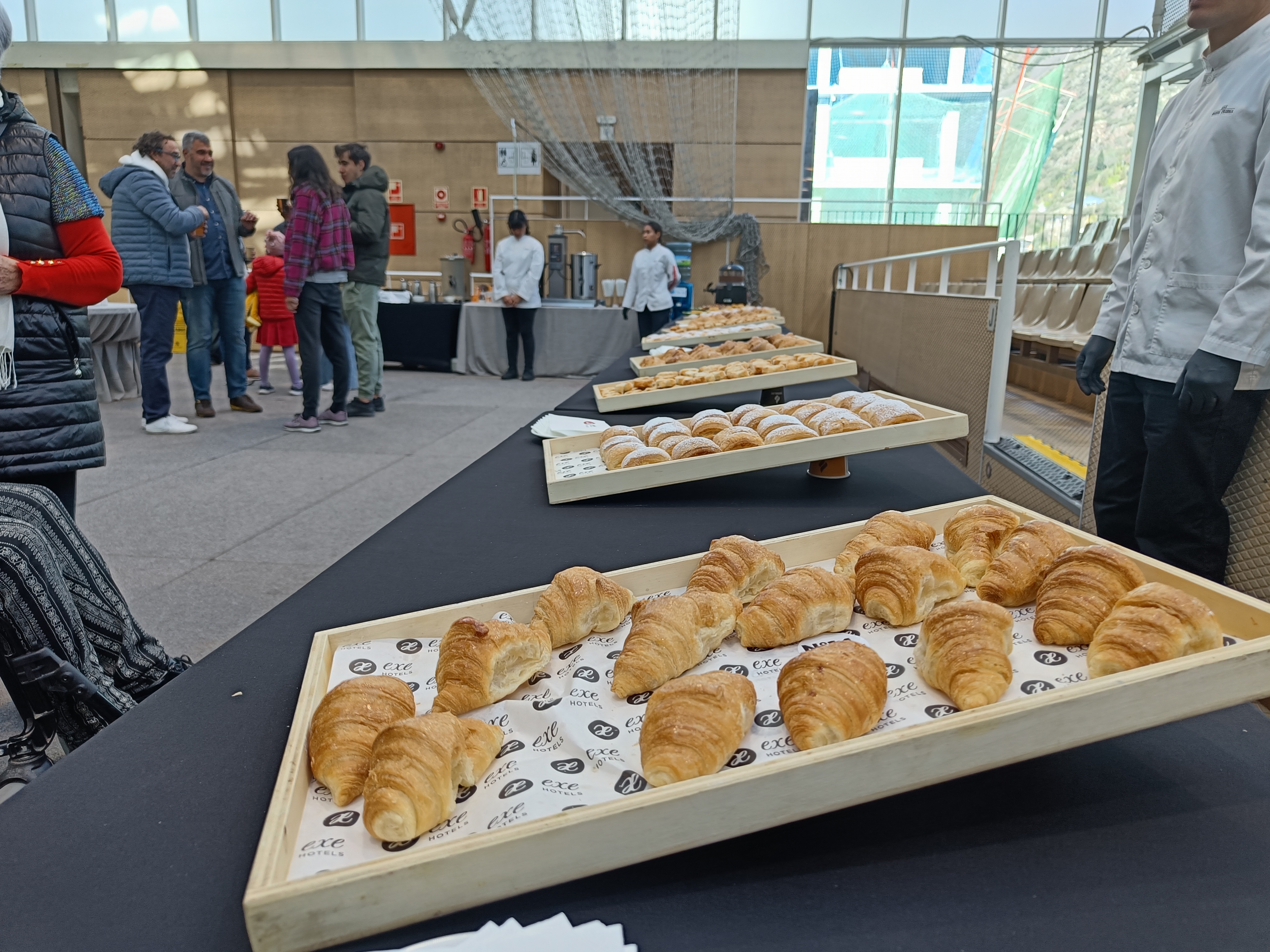Un cop la feina estava feta, tocava alimentar-se. El Comú d’Escaldes té fama de generós, i els presents al Prat Gran ho han pogut comprovar. Durant el matí l’olor de cafè s’escampava pel pavelló, mentre que a les taules, croissants, napolitanes, xurros, xocolata desfeta i sandvitxos feien les delícies dels més afamats.
