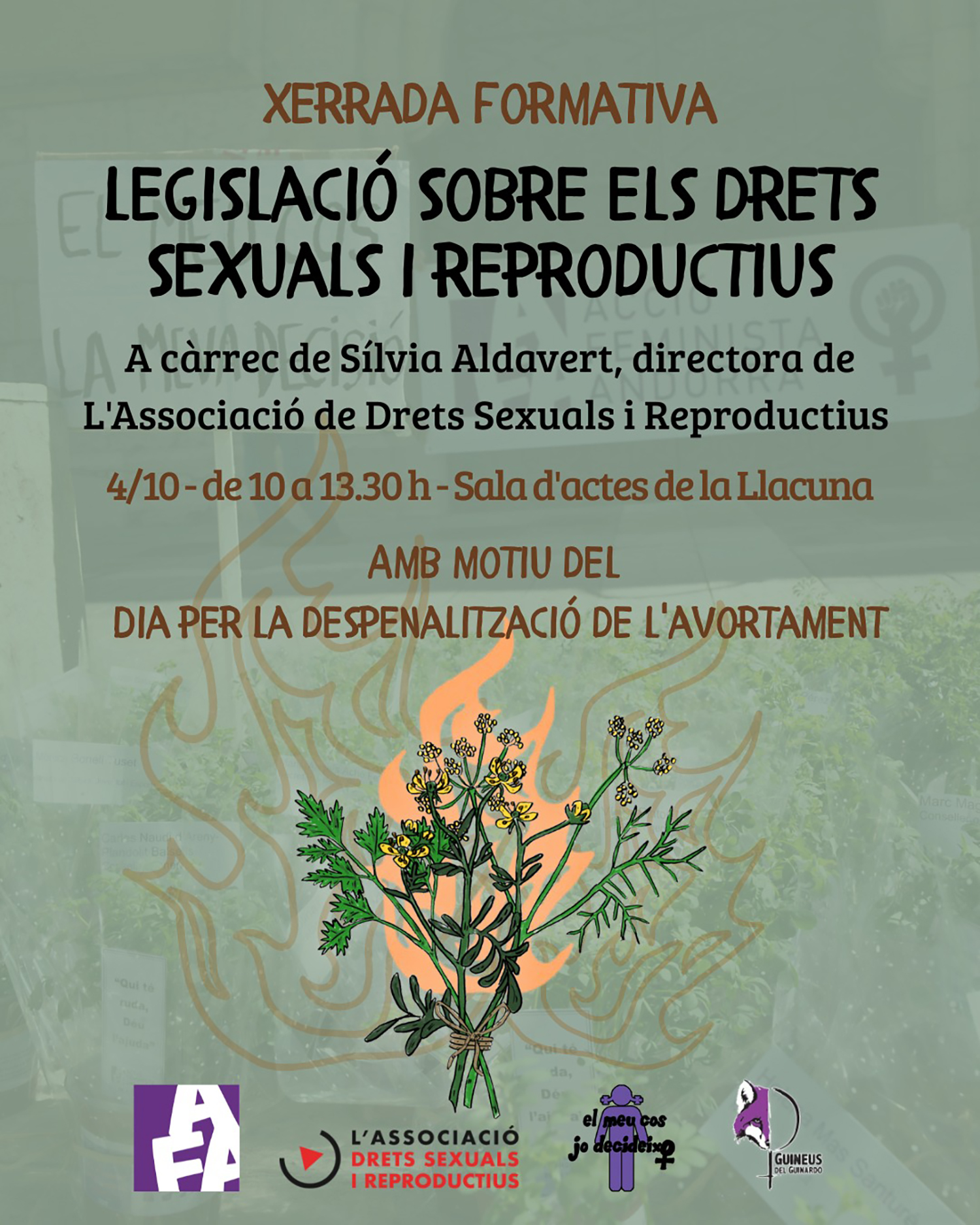 Acció Feminista Andorra organitza una xerrada formativa sobre legislació en drets sexuals i reproductius en motiu del Dia d’acció global per un avortament legal i segur. Serà el dissabte 4 d’octubre a la sala d’actes de la Llacuna, a càrrec de la directora de l'Associació de Drets Sexuals i Reproductius de Catalunya, Silvia Aldavert.