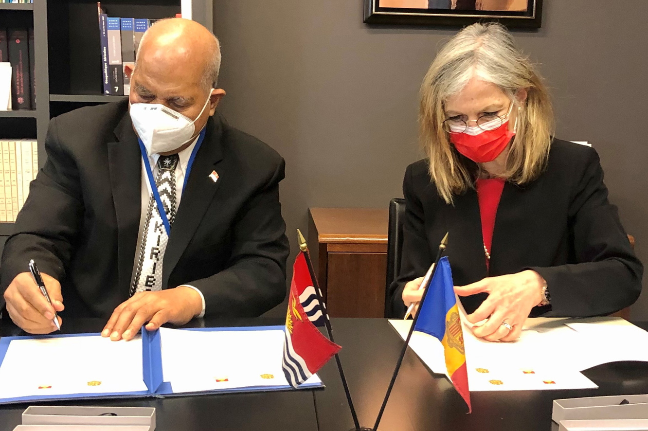 L'ambaixadora i representant permanent d'Andorra a les Nacions Unides, Elisenda Vives, i el de la República de Kiribati, Teburoro Tito, han signat aquest dijous a Nova York l'establiment de relacions diplomàtiques entre ambdós països. L'establiment de relacions diplomàtiques s'inscriu en la voluntat dels dos països d'impulsar lligams de cooperació en els àmbits polític, econòmic i cultural que s'inclouen en la Convenció de Viena del 1961 sobre relacions diplomàtiques i els principis i normes fonamentals de la Carta de les Nacions Unides i del dret internacional.