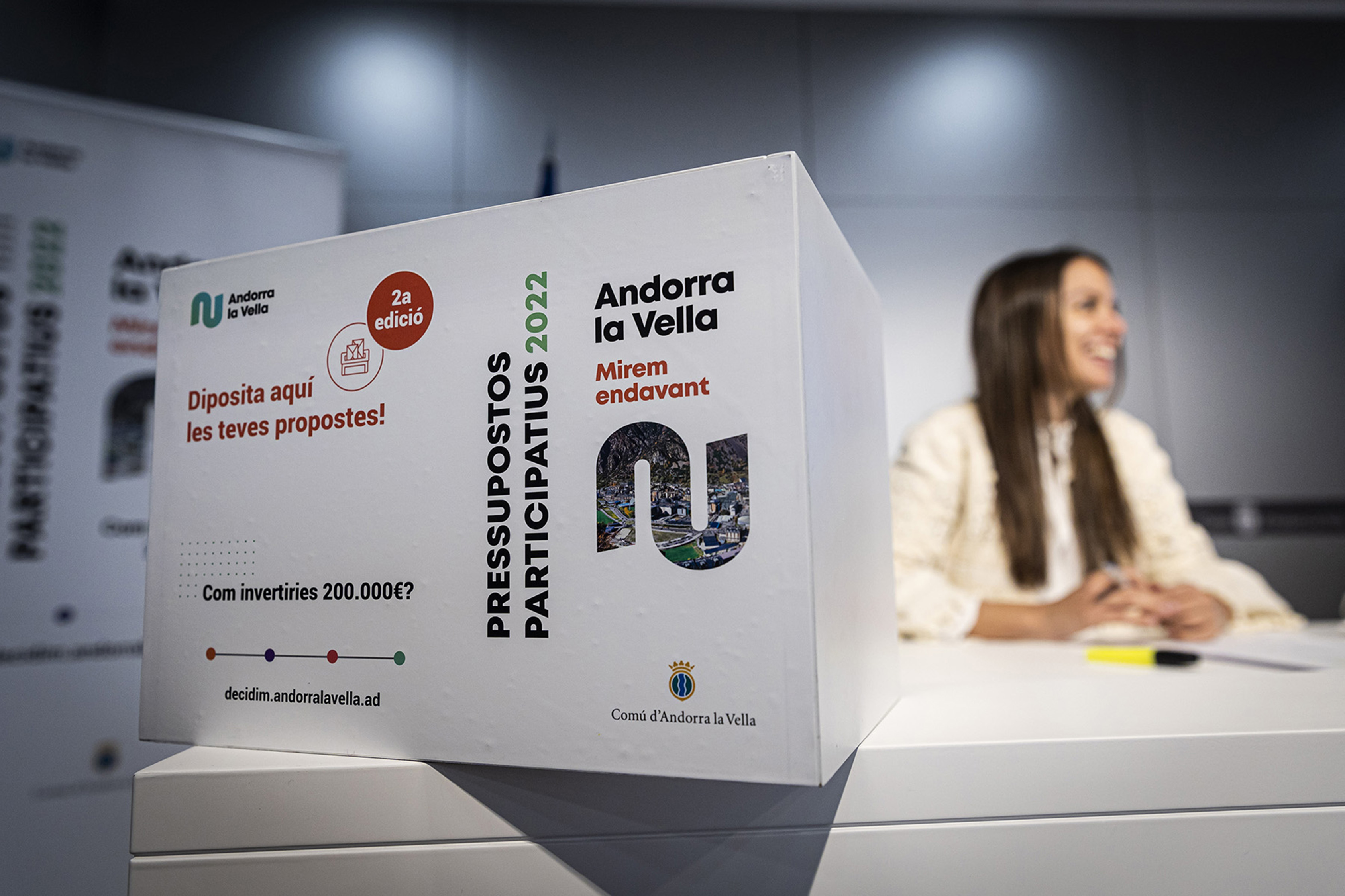 El Comú d'Andorra la Vella ha rebut un total de 108 propostes ciutadanes en la segona edició dels pressupostos participatius, després que el dijous passat va finalitzar el període de presentació d'idees. Es tracta d'una xifra molt similar a la registrada l'any passat i que segons Meritxell López, consellera de Projectes Participatius, "ha de representar una motivació per a totes i tots de cara a les següents fases d'aquesta convocatòria". Alhora, ha volgut agrair la bona implicació i participació de la població de les propostes, que ara s'analitzaran detingudament una a una.