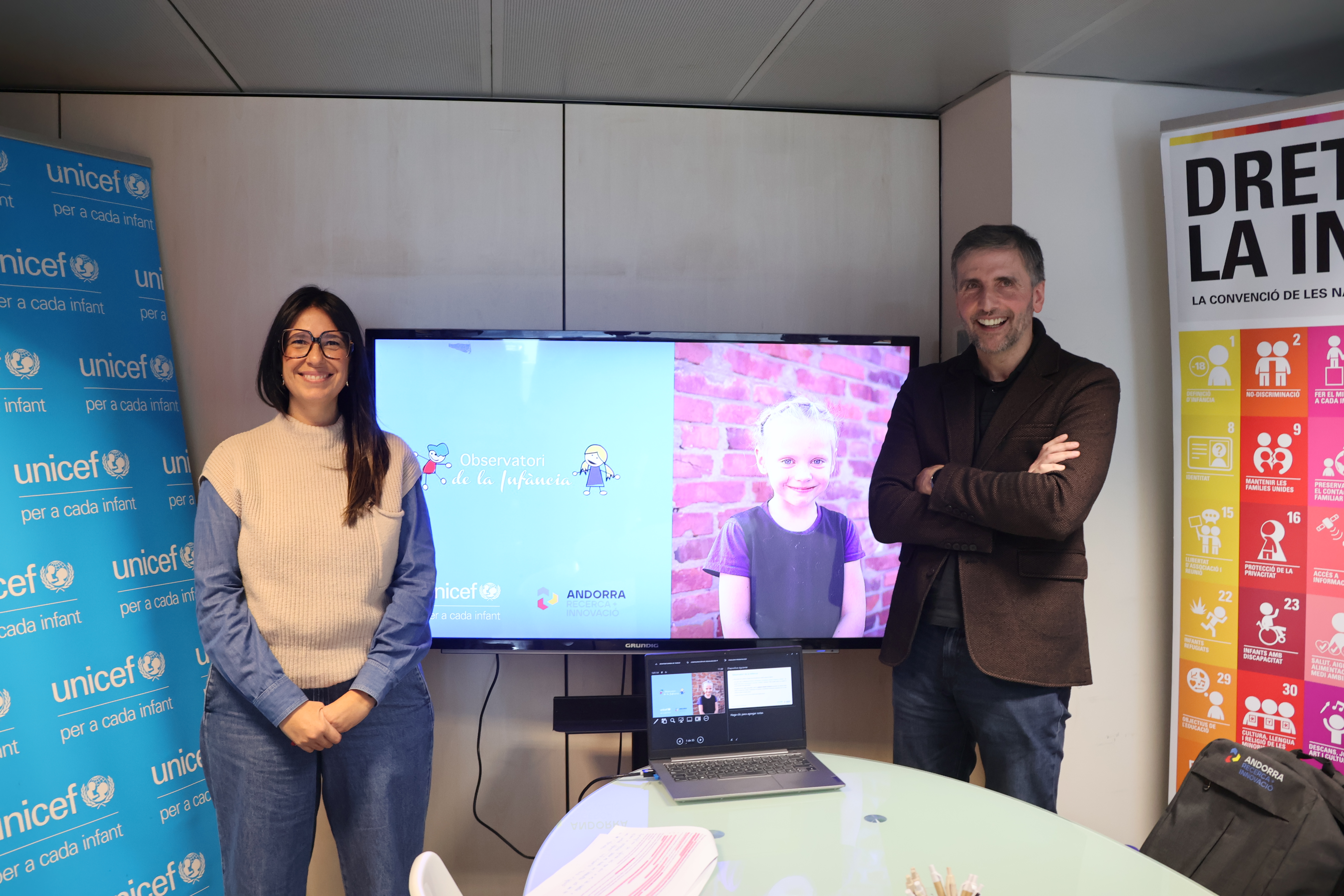 La directora executiva d’Unicef Andorra, Dàmaris Castellanos, i el cap de l’àrea de Sociologia d’Andorra Recerca+Innovació (AR+I), Joan Micó, han destacat en la presentació de l’informe que la Intel·ligència Artificial és un nou risc per a la infància. “Van passar de 10 casos de denúncia a 52. Des de la Policia ens van dir que estaven lligats amb casos de fotografies de nenes despullades i de IA”, ha explicat Micó, mentre que per Castellanos, “quan parlàvem dels punts febles i majors riscos que tenim a Andorra és l’ús de les pantalles. Tot el vinculat amb les tecnologies i l’ús de la informació, que és un dret de la infància, però sense protecció, és el principal risc del país. Tornarem a fer un estudi d’impacte de les tecnologies, perquè és necessari”.