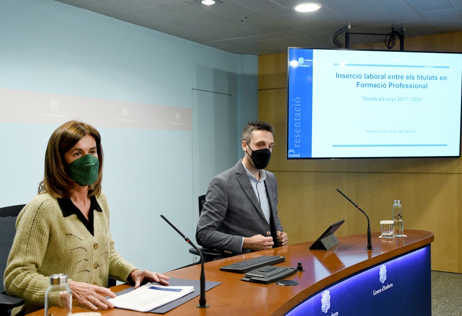 Tot i que els titulats de formació professional tenen una bona inserció laboral (prop del 70% tenen feina) i s’incorporen al mercat laboral en poc temps, cal fer notar que han augmentat els contractes temporals dels que es van titular el 2020 respecte als que ho van fer el 2017. Aquest és un dels aspectes a destacar de l’estudi d’inserció laboral dels titulats de formació professional que avui han presentat la ministra d’Educació i Ensenyament Superior, Ester Vilarrubla, i el tècnic superior de l’Agència de Qualitat de l’Ensenyament Superior, Isaac Galobardes. Per fer aquest informe, el grup de recerca sociològica de l’ARI ha realitzat 173 enquestes telefòniques a titulats de les promocions del 2017 i 2020.