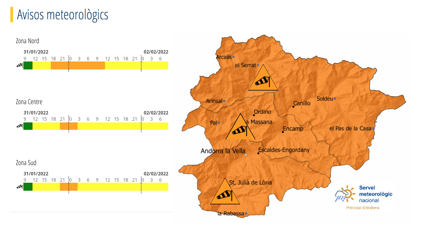 Es poden consultar les indicacions habituals de Protecció Civil i de Mobilitat per extremar les precaucions durant aquest episodi meteorològic a https://www.protecciocivil.ad/info-riscos/ventades i a les xarxes socials i seguir l'evolució meteorològica a www.meteo.ad.