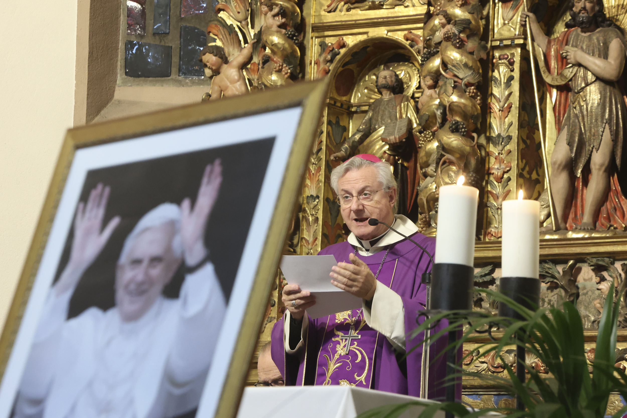 El bisbe va glossar essencialment la humilitat del difunt, a qui si alguna cosa se li ha reconegut de forma transversal és el tarannà intel·lectual: “Ha marxat cap a l’eternitat de Déu un gran creient, un teòleg eminent i un pastor bondadós preocupat pel seu ramat que, quan no va poder guiar-lo perquè les forces l’havien abandonat, va tenir la gosadia de dimitir”. El mateix que vuit anys abans, quan va accedir a la seu de Sant Pere, “va haver de passar de ser un treballador al servei de la doctrina i de la tradició de l’Església a exercir com a pastor universal, a ser un governant que ha d’urgir el canvi i la penitència de la comunitat quan descobreix abusos i corrupció”.