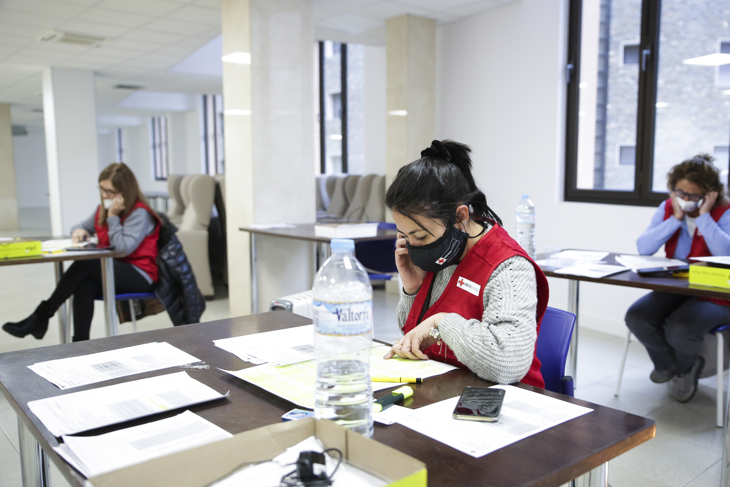 S’encarreguen del servei un total de 12 persones repartides en dos torns, una de les quals és assalariada i la resta són voluntàries. La treballadora és l’encarregada de coordinar la tasca dels voluntaris d’aquest centre de trucades, ubicat de moment al centre de dia, que ja està enllestit però que de moment no ha entrat en funcionament. El call center funciona de 8 a 18 hores. En una segona fase, va afegir Fernández, si hi ha comuns que necessiten els suport de la Creu Roja per trucar a les persones grans censades a la parròquia, se’ls donarà un cop de mà.