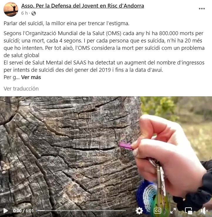 L’Associació en Defensa del Jovent en Risc d’Andorra (Adjra) ha iniciat una campanya a través de les xarxes socials per prevenir i trencar l’estigma del suïcidi. La campanya consisteix en la difusió d’un curtmetratge que aborda aquesta problemàtica acompanyat de les dades fetes públiques des de Salut Mental de l’augment creixent d’intents de suïcidi. Així, el 2021 n’hi va haver 9 en adolescents i 29 en adults.