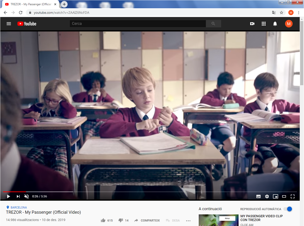 D’aquesta manera, es difondrà a través de les xarxes socials el vídeo musical ‘My passenger’ del grup Trezor. Es tracta d’una cançó escrita amb la voluntat de donar visibilitat a la transsexualitat infantil. De fet, la protagonista del vídeo és una nena trans de 8 anys i les imatges descriuen la seva història. El videoclip està disponible en el següent enllaç: https://www.youtube.com/watch?v=ZAAIZ6NcFDA.