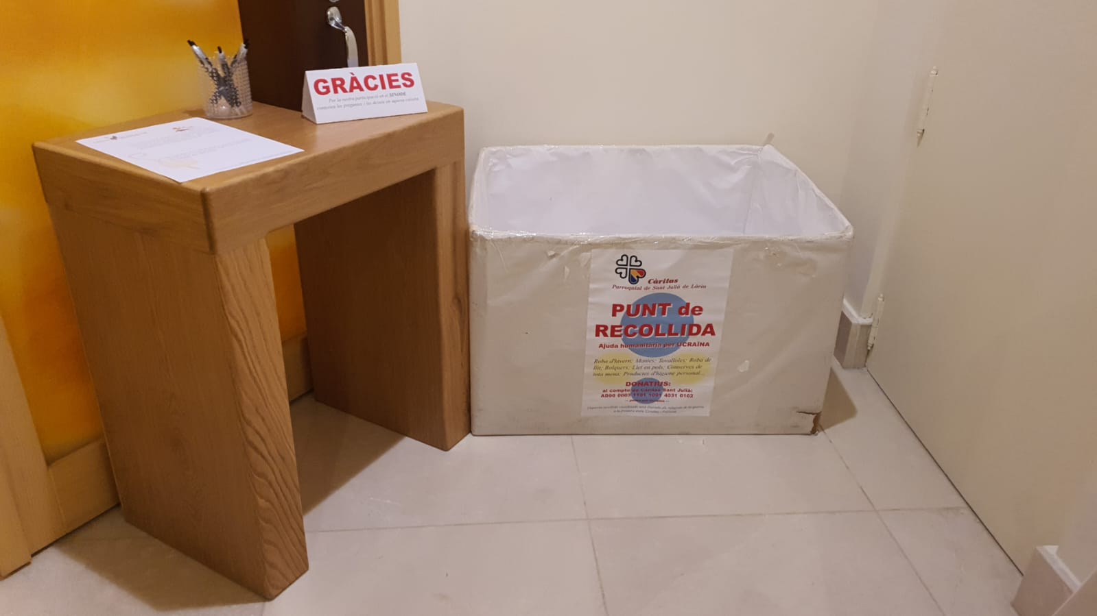 D'altra banda, Càritas Sant Julià ha establert un punt de recollida "en espècie" a l'església parroquial. En concret, es demana roba d'hivern, mantes, conserves, bolquers, llet en pols i productes d'higiene personal. També es posa a disposició dels ciutadans un número de compte bancari per fer aportacions econòmiques. Aquests productes es poden dipositar en unes caixes.