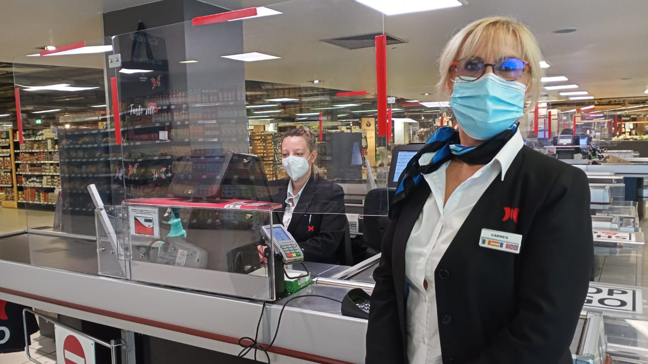 Era una situació nova per a tots, i la vam enviar a casa. De seguida ens van repartir mascaretes, guants i gel, van instal·lar mampares a les caixes i vam establir protocols sanitaris: cada dues hores ens anàvem a rentar les mans, ens prenien la temperatura cada matí abans d’entrar, i dinàvem a la feina, per no haver de sortir i estalviar-nos riscos innecessaris.