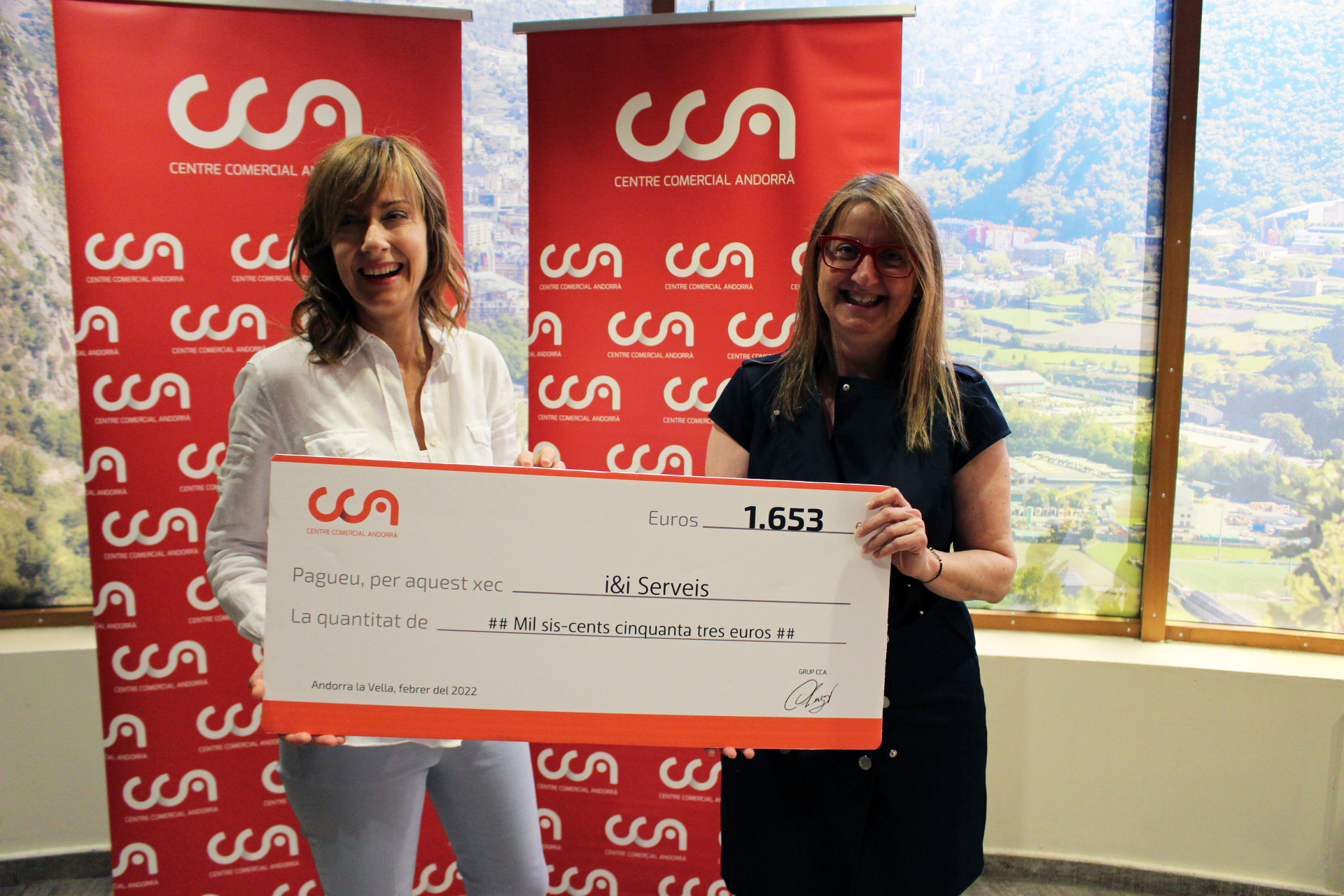 El Centre Comercial Andorrà (CCA) ha lliurat a la Fundació Privada Nostra Senyora de Meritxell (FPNSM) un xec per valor de 1.653 euros, recaptats durant el 2021 corresponents a la venda dels productes de l’empresa d’inclusió sociolaboral de la fundació, i&i Serveis.