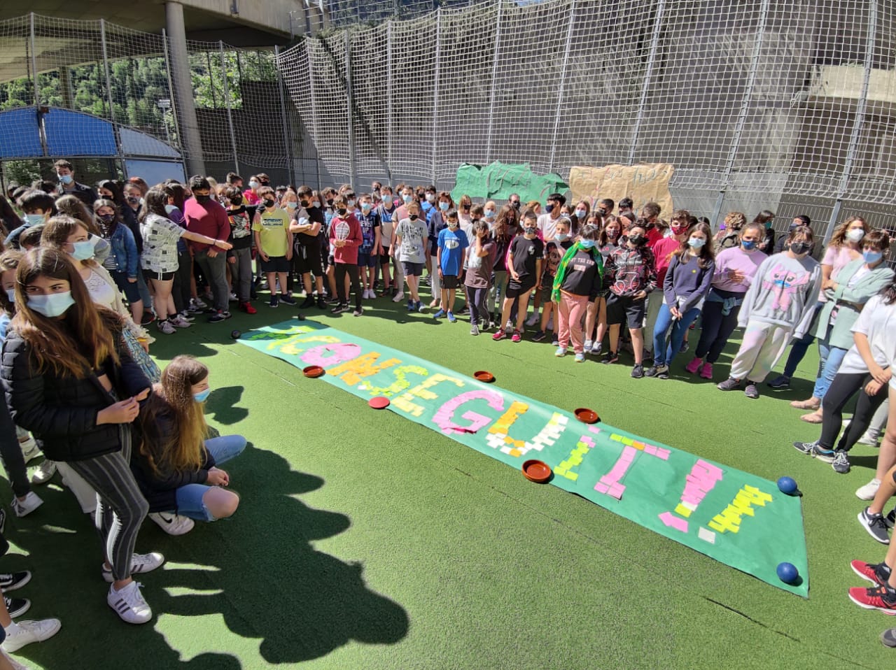 El gran desig dels alumnes per al curs vinent? Poder estar sense mascaretes. Això és el que van compartir ahir dos dels alumnes de segona ensenyança de l’escola andorrana d’Encamp, el Jan i la Maria, que van participar en l’acte simbòlic de comiat efectuat al mateix temps a tots els centres educatius del país. En aquest cas, va consistir a trobar-se al pati alumnes, docents i tot el personal educatiu per cridar junts a una veu, a la de tres: “Junts ho hem aconseguit!” I ho van exclamar amb totes les forces i no ho van fer perquè sí, perquè tocava o perquè ho havien assajat. No. Sabien per què ho deien. Fins i tot a algun dels docents se li van escapar les llàgrimes. I és que aquesta ha estat una de les escoles que s’ha vist més afectada per la pandèmia, va haver d’estar tancada durant dues setmanes al novembre. I a més, va començar el curs amb el pati i el menjador inhabilitats perquè es va detectar una tensió en els ancoratges del mur perimetral.