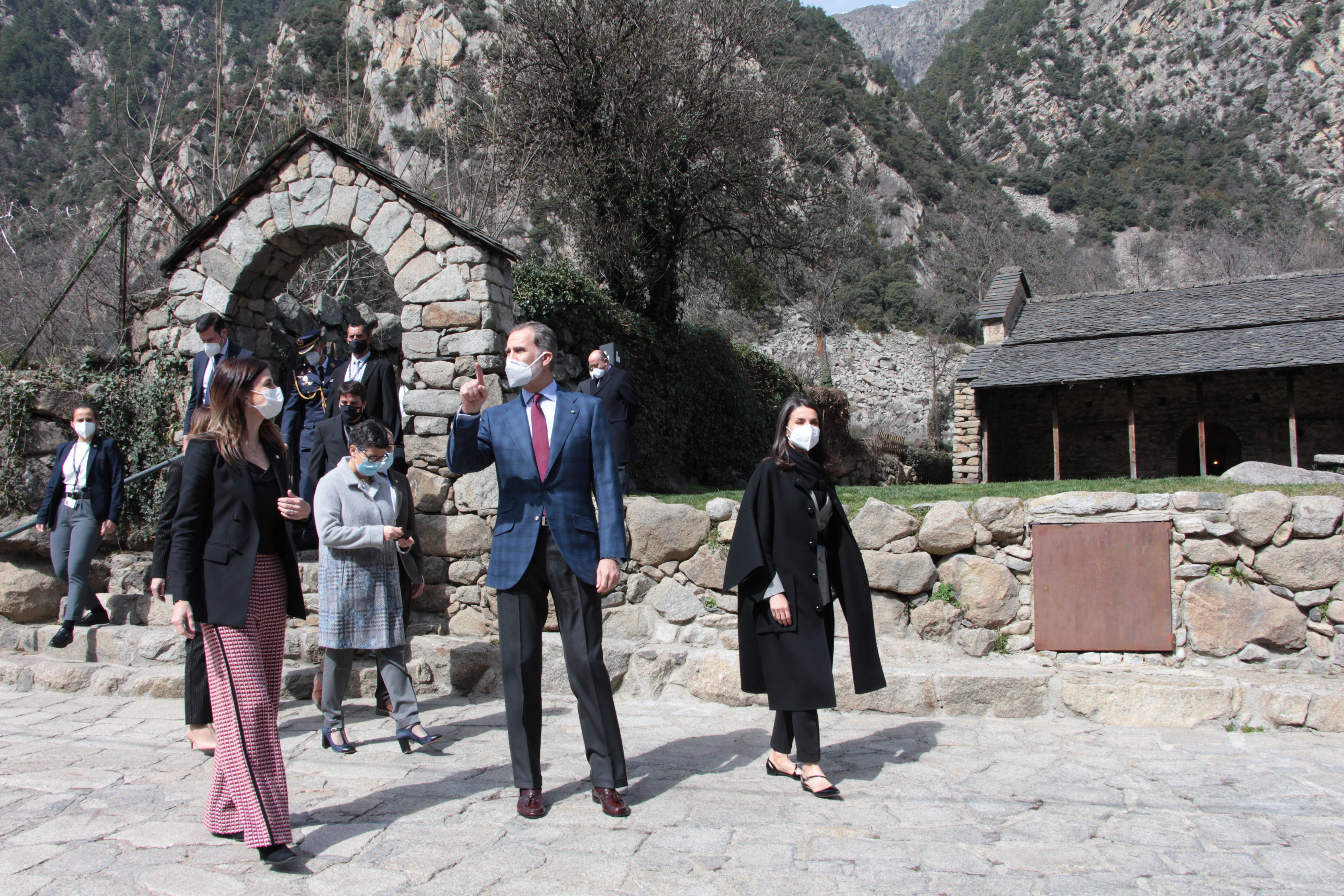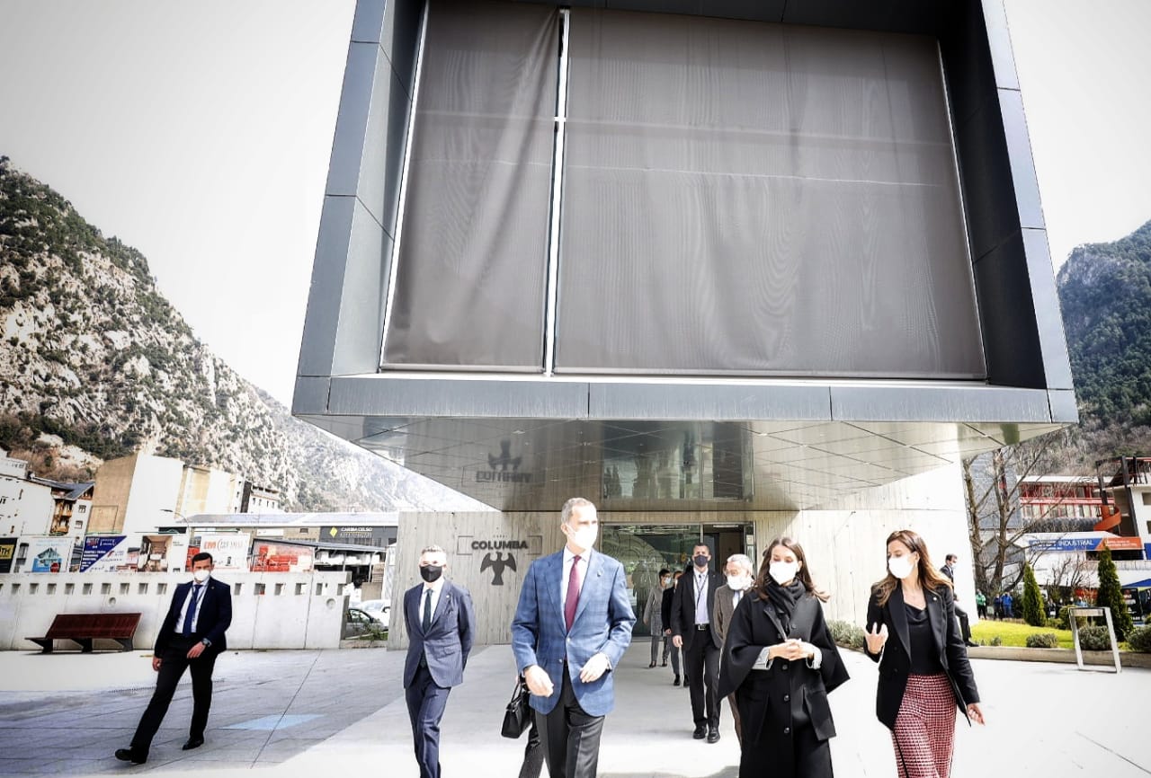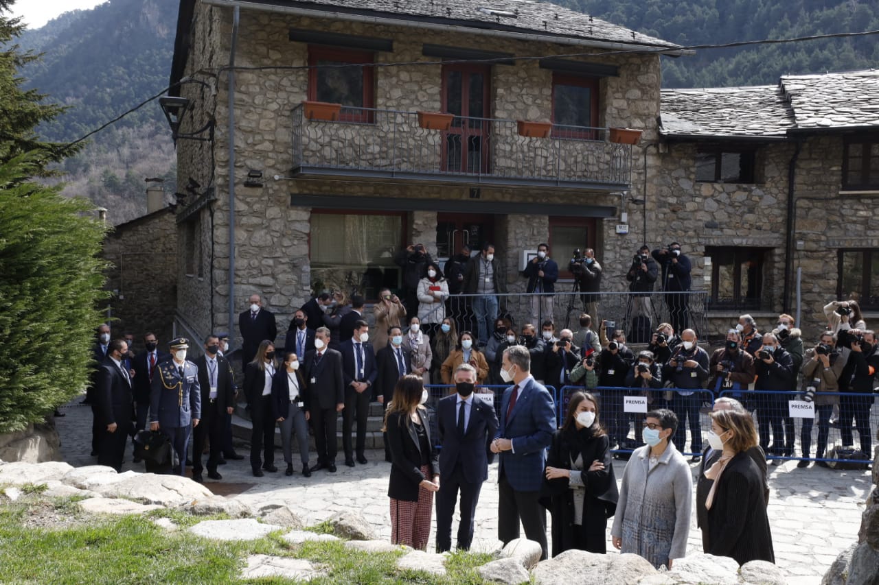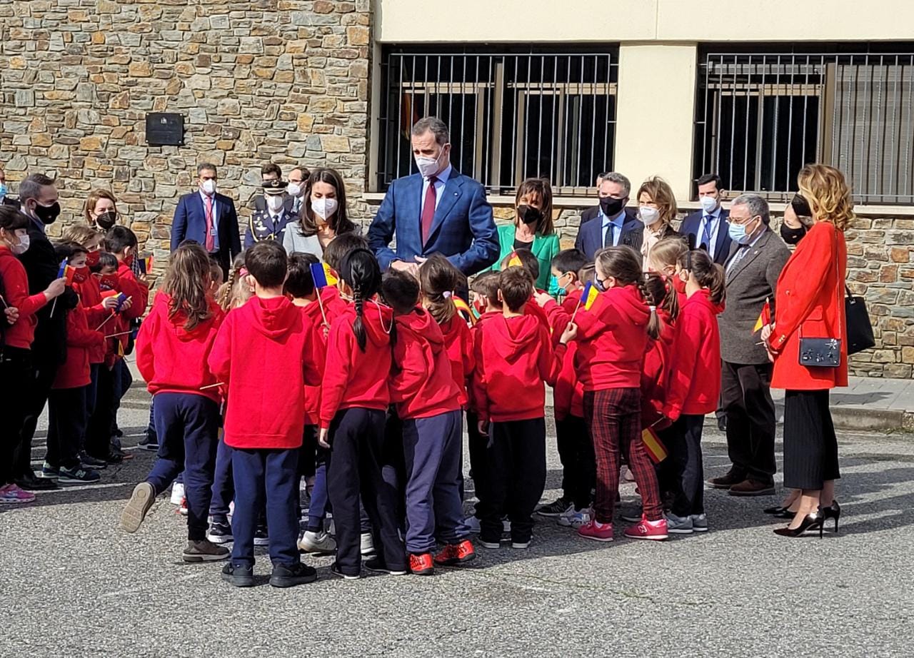 Efectivament, així és com es desenvolupa el recorregut, d'ençà que Felip i Letícia baixen del cotxe, acompanyats per la ministra espanyola d'Afers Exteriors, Unió Europea i Cooperació, Arancha González Laya, i l'ambaixador Àngel Ros, per la part espanyola, i les autoritats andorranes encapçalades per la ministra d'Educació, Esther Vilarrubla. Els escolars posen la nota de vivacitat al conjunt, és clar. La reial parella se separa per xerrar amb els nens i des del grupet on hi ha la reina les criatures s'animen i comencen a cridar "Que venga el rey, que venga el rey!" I el rei, és clar, s'hi atansa. Minuts més tard també s'hi atansa la premsa. Una intrèpida reportera televisiva del Regne d'Espanya pregunta als nens "Os gusta ser españoles? Os gusta estudiar en español?" Preguntes capcioses adreçades a nens de set anys i en un país on l'idioma oficial és el català, cosa que sembla oblidar. Per contrarestar, a un reporter de TVE una nena li ha regalat una bandera d'Andorra que ell ha plantat en la seva càmera. Nacho París, un periodista de la vella escola -"estic a punt de jubilar-me", explica- que coneix a fons el Principat. "Però ara feia deu o dotze anys que no venia i ho he vist tot molt canviat", amb un skyline ben diferent "i totes aquestes grues en funcionament, cosa que no es veu per enlloc".