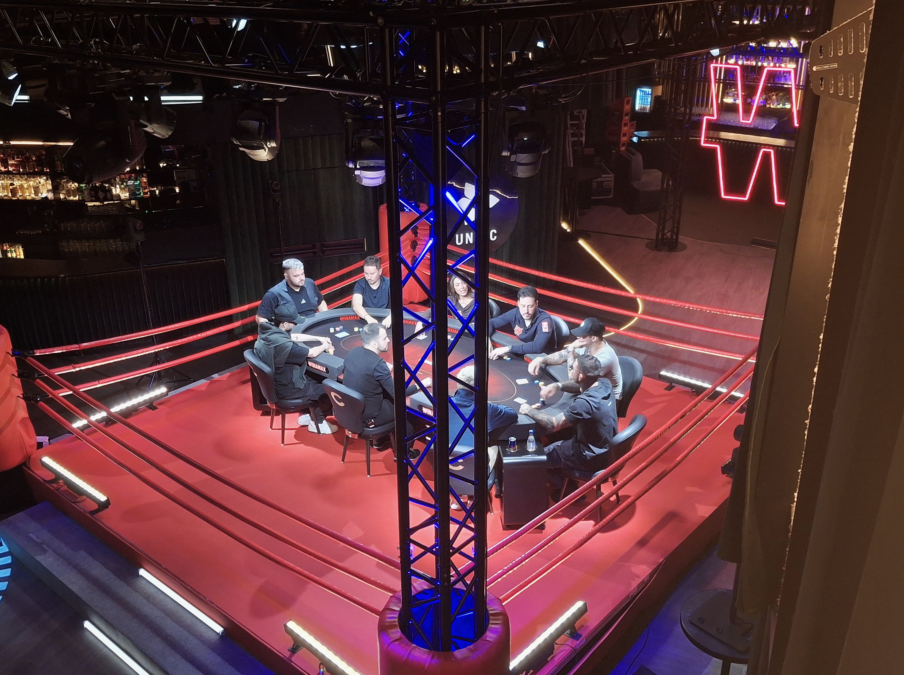 Continuant amb la singular timba celebrada ahir –que, per cert, la taula on es va jugar estava dins un ring de boxa vermell, tremendo–, realment no va tenir lloc al Casino, sinó a la sala Greenbox d'Unnic. A la discoteca, per entendre'ns. I tampoc estaven sols, sinó que a les llotges que rodegen l'estança hi havia tot d'amics i coneguts dels intrèpids jugadors afartant-se, com ha de ser, de les delícies que els servien els professionals i servicials cambrers del local. De tant en tant, com també és evident, se sentia una mica de xivarri de la gresca que alguns van aprofitar per muntar, però ningú, que jo sàpiga, els va tallar el rotllo. I és que per quin motiu algú els hi hauria d’haver tallat? No en trobo cap, ara mateix.