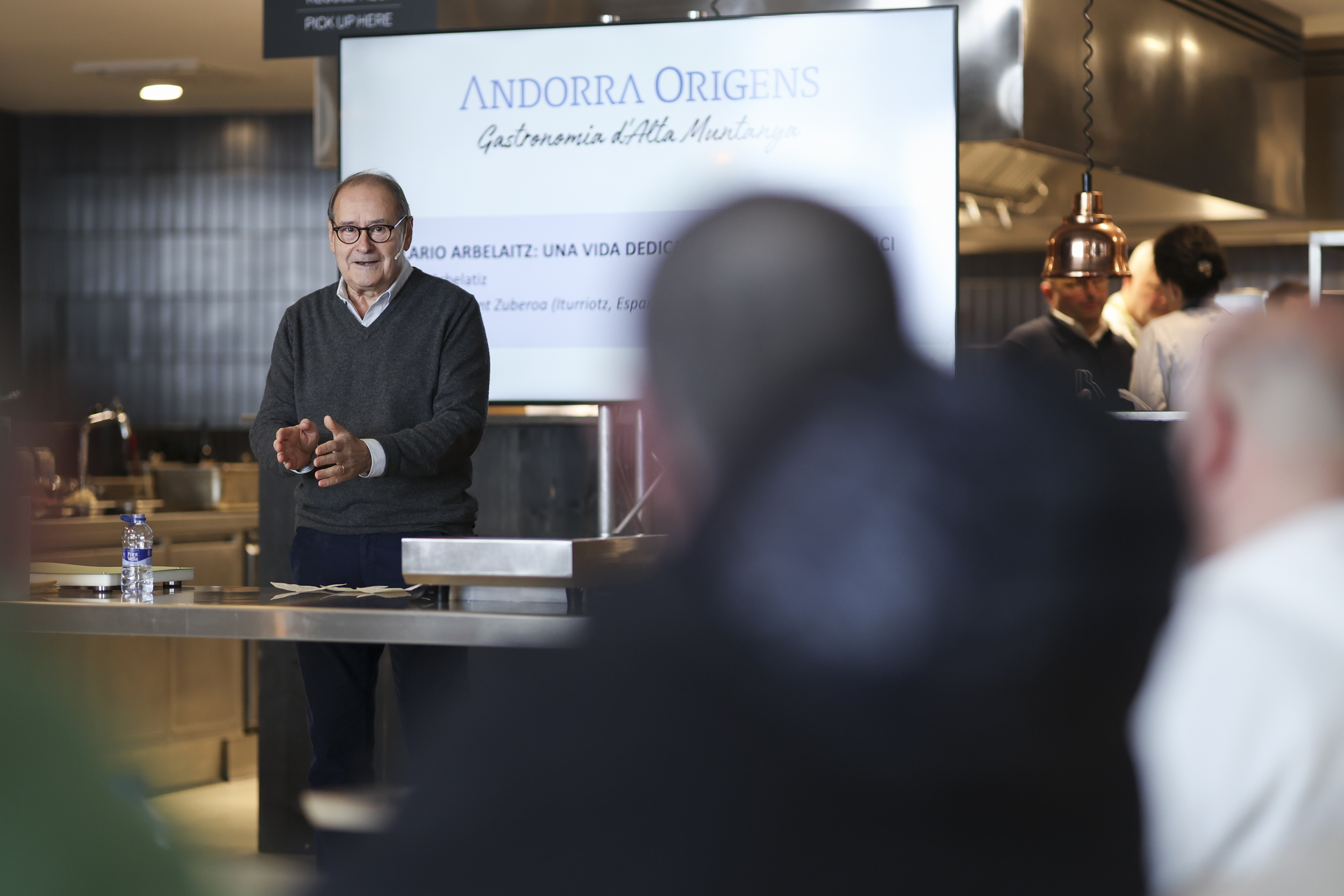 El següent convidat ha sigut un dels plats forts del campus. El fundador i xef de l’antic restaurant Zuberoa, Hilario Arbelaitz, que ha explicat als cuiners presents una mica de la seva trajectòria al càrrec dels fogons del conegut restaurant guipuscoà, que va tancar el 2022 després de 52 anys d’història. Arbelaitz va ser un dels protagonistes de la Nova Cuina Basca, però la seva motivació principal no era ser un reconegut cuiner d’avantguarda, sinó “conservar els plats que cuinava la meva mare”. Recorda que eren “molt gustosos”, i la por a perdre’ls per sempre el va dur a obrir el restaurant. Tot i així, es va preocupar de formar-se i impregnar-se de les tendències que estaven sorgint en aquell moment, sobretot a Espanya i França. “Quan tenia uns quants diners estalviats, me’ls gastava a anar a restaurants, així aprenia”, diu Arbelaitz. I és que això és el que el va portar a convertir-se en un dels cuiners més influents de la gastronomia basca, amb cartes i plats ja mítics, com el pastís de formatge que feien. Avui, a la ponència, ha confessat als presents la recepta de les postres, així que molt probablement podrem degustar a diversos restaurants del país una reinterpretació a l’andorrana del famós pastís de formatge del Zuberoa. Veurem!