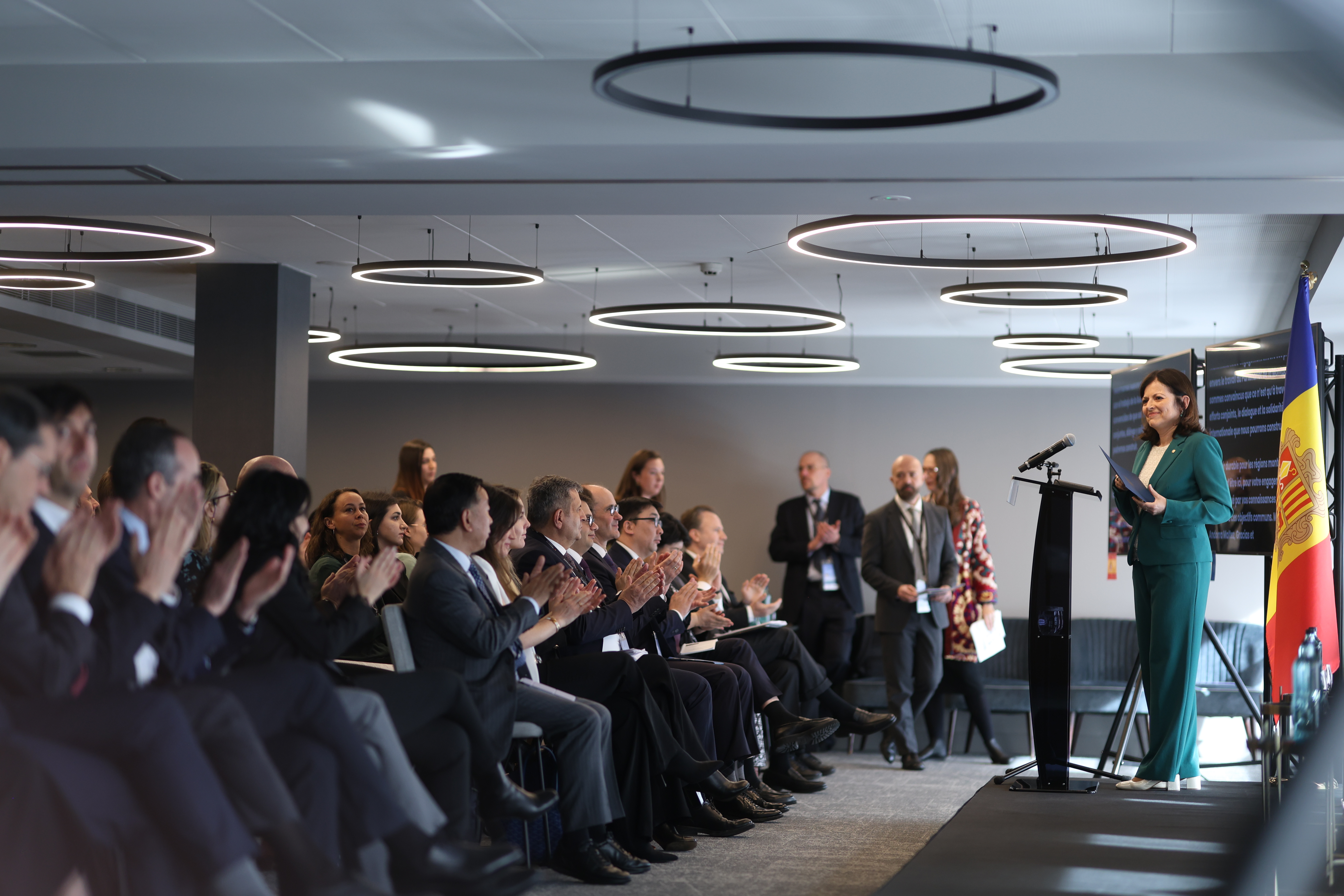 La ministra Tor va oficiar el discurs inaugural en nom del cap de Govern, Xavier Espot, que no va poder acudir a l'acte, ja que en aquell moment estava al lloc del malaurat incendi de l'antiga Fàbrica d'Aigües d'Arinsal. Però sí que hi va assistir més representació governamental, com és el cas del secretari d'Estat de Transició Energètica, Transports i Mobilitat, David Forné. Aquest considera "molt rellevant" el fet que la reunió sigui al Principat, i detalla que, respecte a la seva gestió ambiental, "pretenem ser el màxim d'exemplars i transparents possible", ja que, d'aquesta manera, "podrem ser el màxim exigents amb els països que excedeixen les emissions de gasos d'efecte hivernacle". En aquest sentit, Forné recorda que "des del 2005 hem reduït de manera substancial les emissions de carboni", i de cara al 2050 "pretenem arribar a la neutralitat".