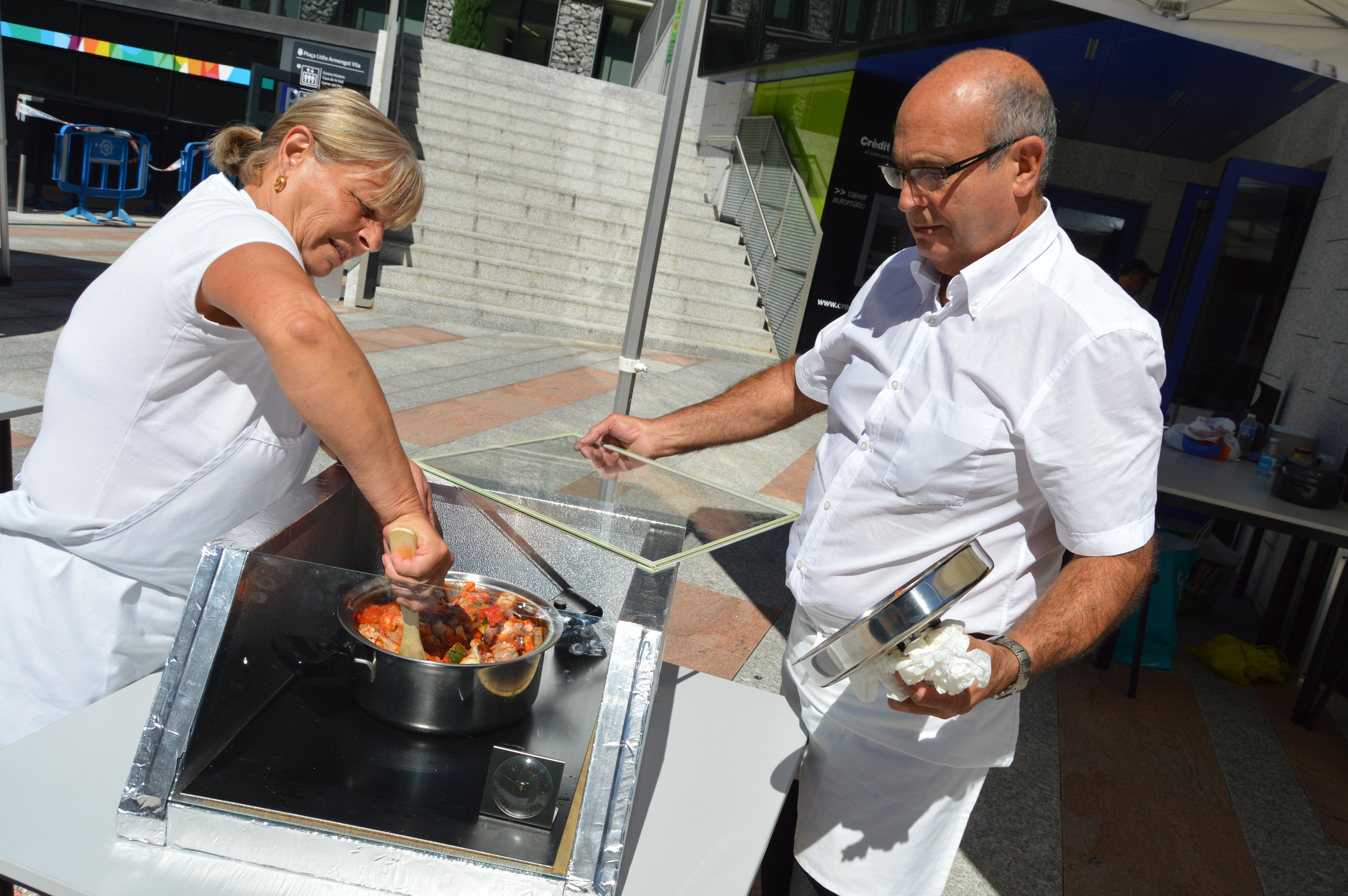 Tres hortolans dels horts de la Margineda del Comú d’Andorra la Vella van participar ahir en una demostració pública de cocció lenta amb un forn solar. L’activitat va tenir lloc a la plaça Lídia Armengol Vila per donar a conèixer aquesta forma de cuina ecològica. Van elaborar arròs amb ceps, conill amb samfaina i un púding, tot preparat i condimentat amb productes de proximitat.