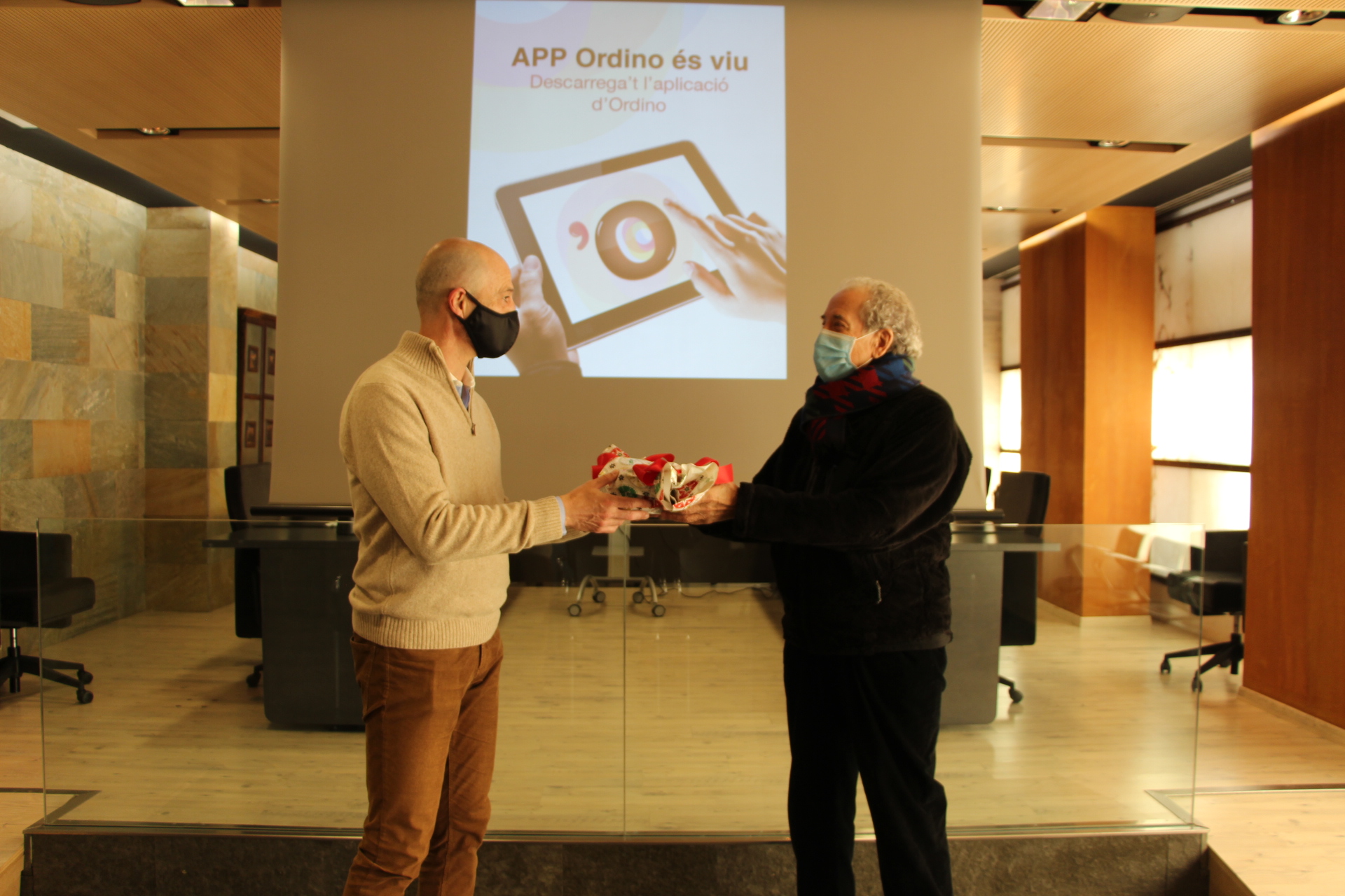 El veí d’Ordino, Antoni Cabó Tellez ha estat protagonista avui per fer la descàrrega número 3.000 de l’app ‘Ordino és viu’. L’usuari ha estat obsequiat amb dues entrades per a la mina de Llorts i un lot de productes de marxandatge de l’Oficina de Turisme. El conseller de Comunicació i Sistemes d’Informació, Xavier Herver, ha fet el lliurament del premi a la sala del Consell aquest migdia. “És una manera d’agrair públicament la fidelitat dels usuaris que donen vida a l’aplicació”, ha explicat el conseller.