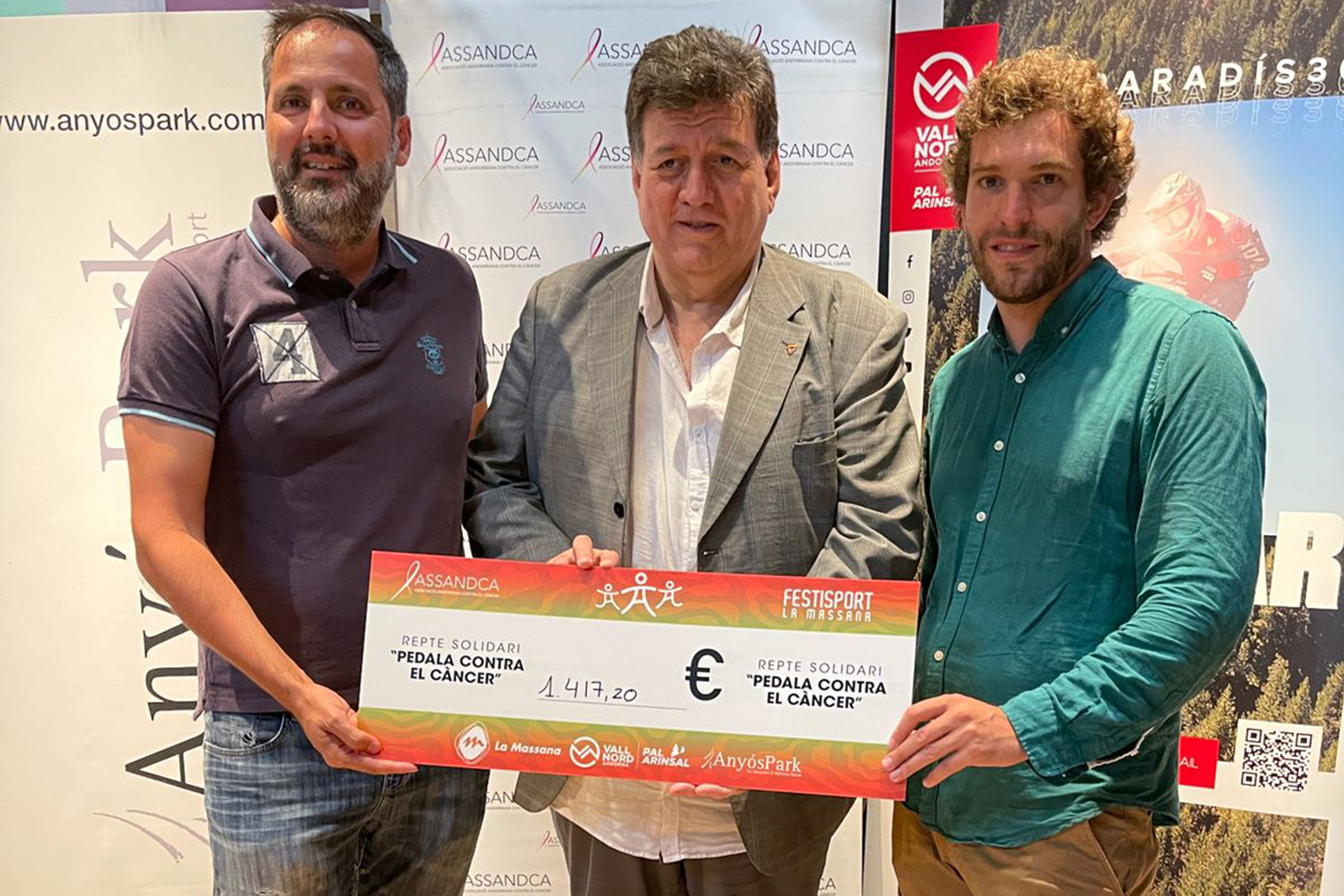 El repte solidari 'Pedala contra el càncer' ha recaptat un total de 1.417,20 euros. Es tracta d'una iniciativa del Centre Esportiu d'Anyós, Vallnord i el comú de la Massana emmarcada dins del festival Festisport que buscava recaptar diners per a l'Associació Andorrana contra el Càncer (Assandca), que els dedicarà a la seva acció a favor dels pacients oncològics.