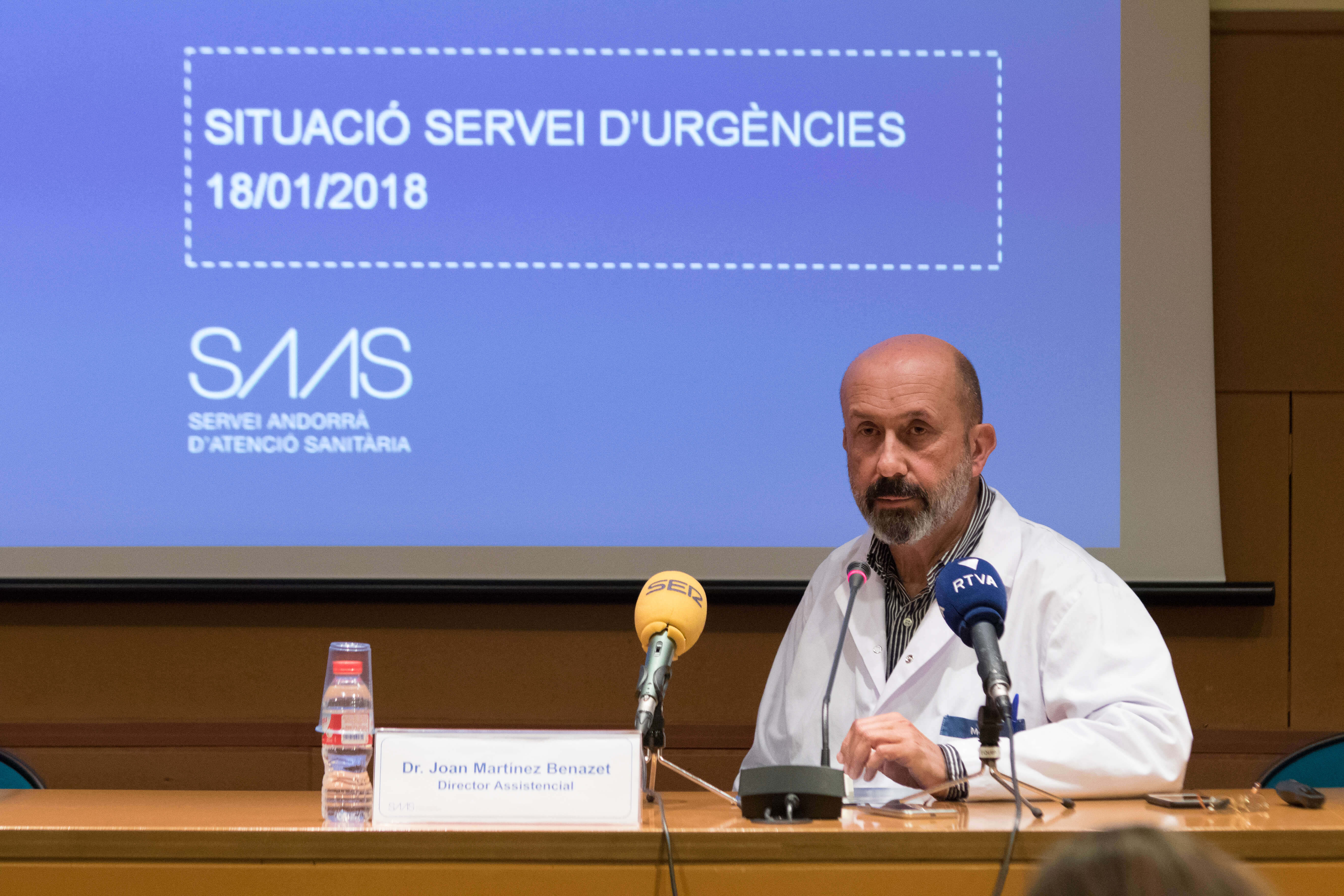 El director assistencial del Servei Andorrà d’Atenció Sanitària (SAAS), Joan Martínez Benazet, va acceptar ahir que la manca d’efectius a Urgències ha comportat en períodes punta com el que ens trobem un increment de l’estrès laboral i de les llistes d’espera, que han arribat a les quatre i sis hores en els casos de baixa complexitat. Aquesta situació, però, no ha afectat la qualitat assistencial (que es manté elevada segons els indicadors), ja que els professionals s’han donat suport els uns als altres, en paraules de Martínez Benazet. A més, va remarcar que el temps d’espera dels pacients no és més llarg que als països del voltant, si bé va recordar que el servei d’Urgències d’Andorra és diferent perquè, a banda de les tasques a l’hospital, assumeix les urgències extrahospitalàries amb el SEM, el transport sanitari, i actua com a centre regulador. El director assistencial va acceptar que fa temps que no es té la plantilla coberta i això ha provocat que “el grau de tensió” sigui “terrible”.