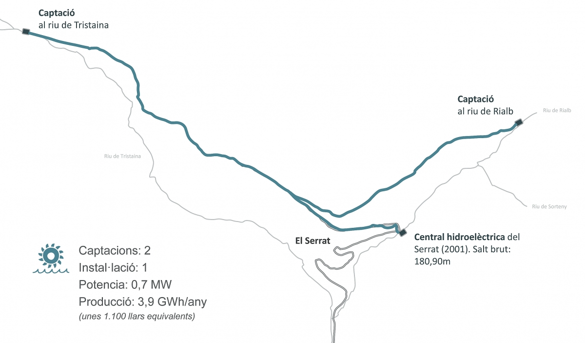 De fet ahir el Govern ja va aprovar la primera convocatòria per a la concessió de la instal·lació hidroelèctrica del Serrat. Es tracta d'una infraestructura prevista al Pla sectorial d'infraestructures energètiques que té dues captacions, una del riu de Tristaina i una altra del riu de Rialb amb una previsió de producció de 3,9 GWh/any, la qual cosa vol dir que es produrià energia per al consum de 1.100 llars, ha remarcat Miquel. Ara els interessats tenen 3 mesos per presentar sol·licitud i un cop estigui aprovada es preveu un període de 6 mesos per a l’inici de les obres i de 18 mesos per a l’entrada en funcionament de la infraestructura.