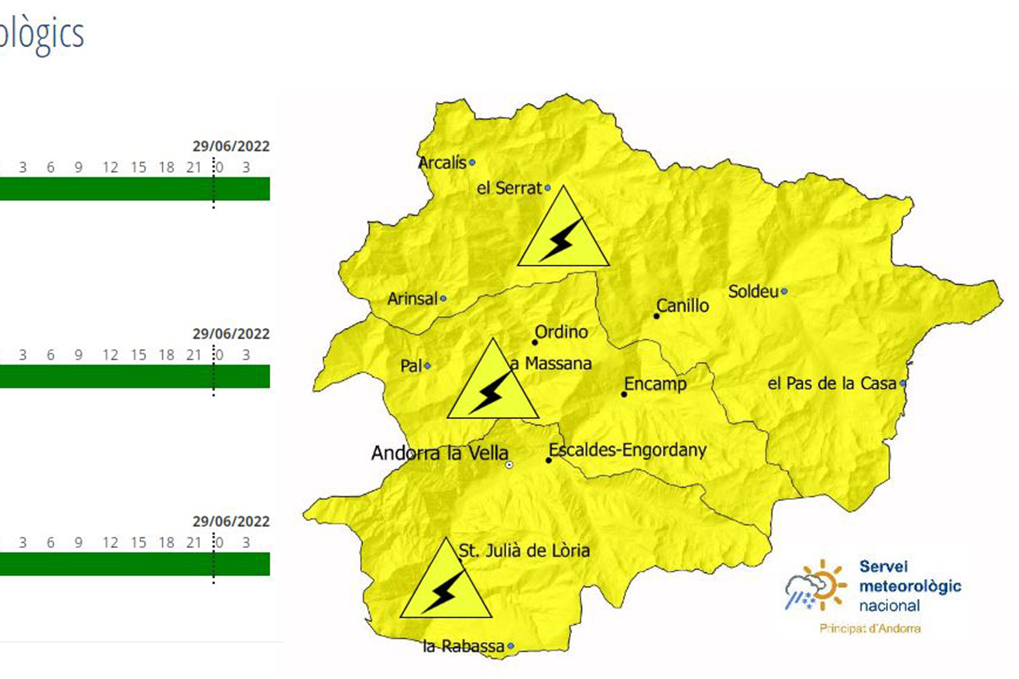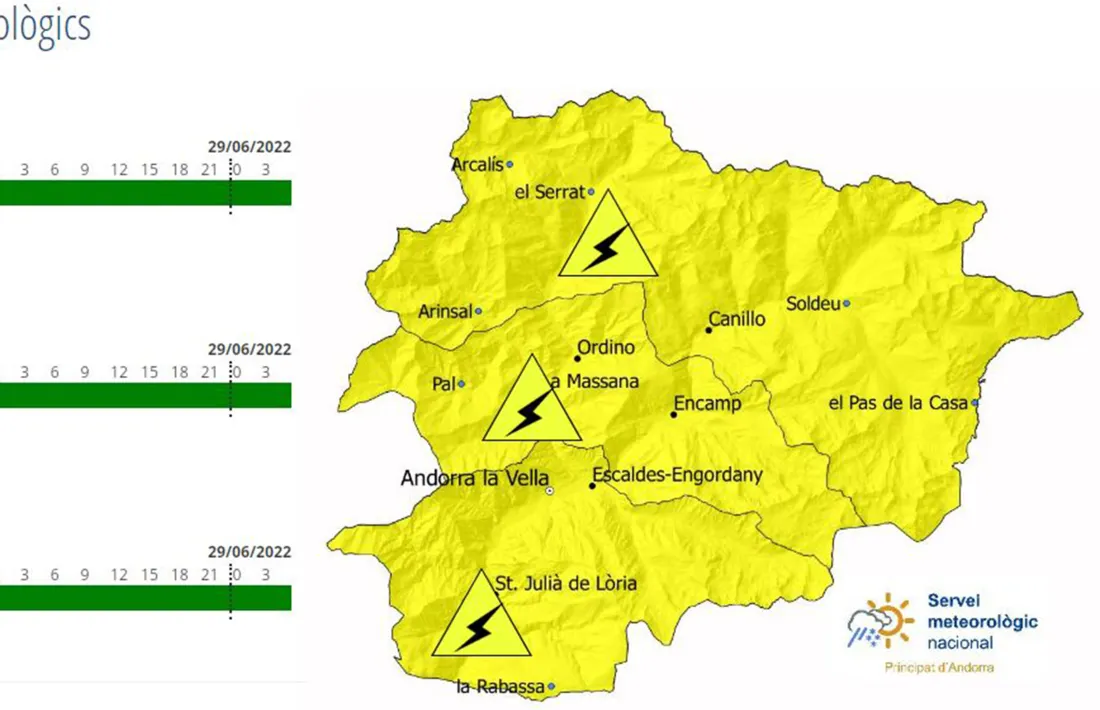 El Servei Meteorològic Nacional ha activat l'avís groc per tempestes per a aquesta tarda. A través del seu compte de Twitter, avisa que les precipitacions poden produir-se ja durant el matí, però que serà a la tarda quan s'espera que l'activitat tempestuosa, i acompanyada de calamarsa, pugui afectar tot el país.