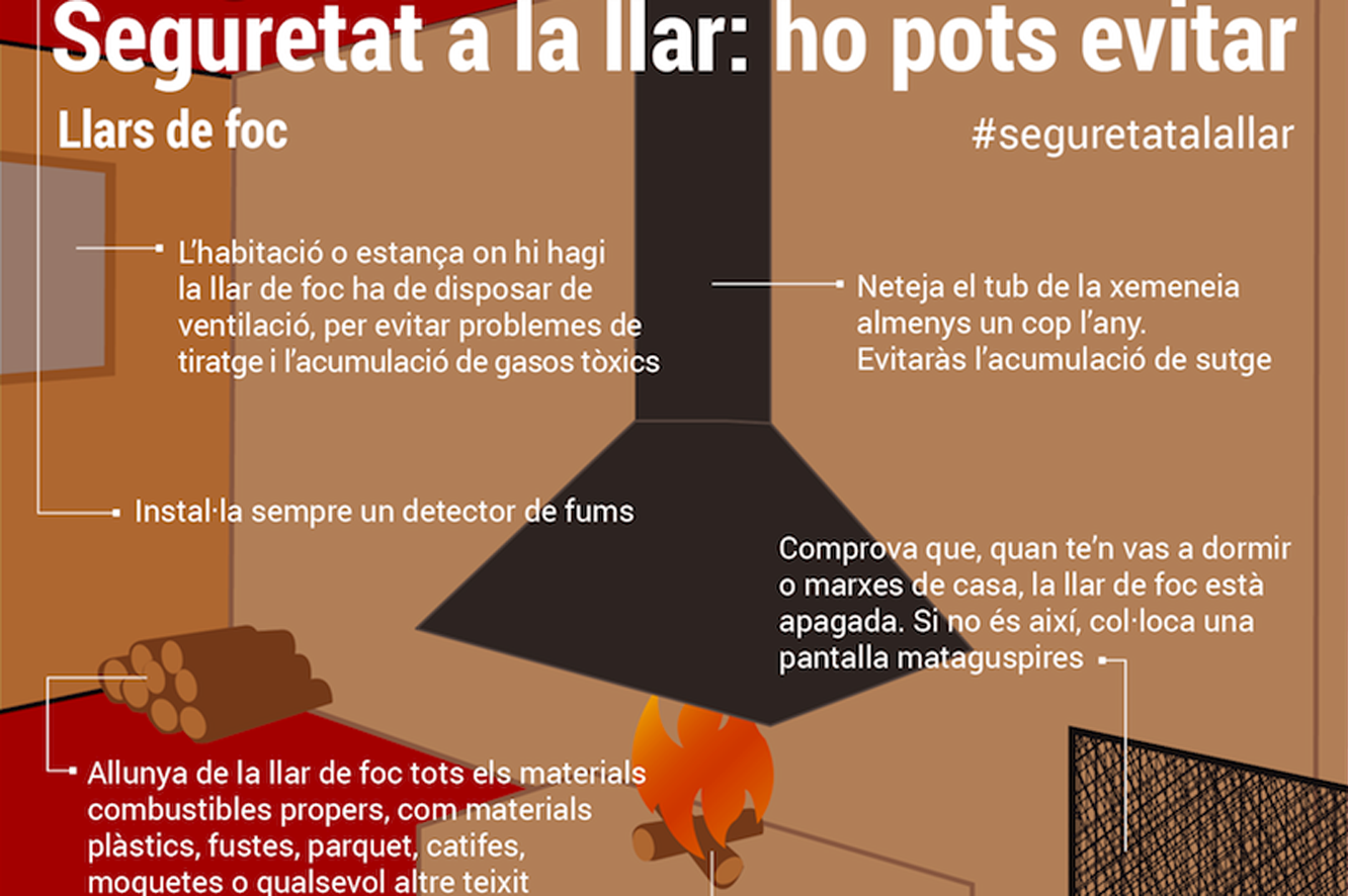 D'altra banda, els bombers també recorden que cal allunyar de la llar de foc tots els materials combustibles propers, com poden ser materials plàstics, fustes, parquet, catifes, moquetes o qualsevol altre teixit, així com no cremar fusta tractada i evitar aquelles que siguin resinoses perquè poden acumular sutge o quitrà.
