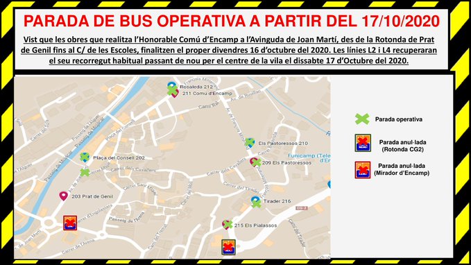 A partir d'aquest dissabte, 17 d'octubre, les línies de transport públic L2 i L4 recuperaran el seu recorregut habitual. Així doncs, els vehicles circularan de nou pel centre de la vila d'Encamp un cop finalitzades les obres de millora de l'avinguda, segons ha informat el Govern.
