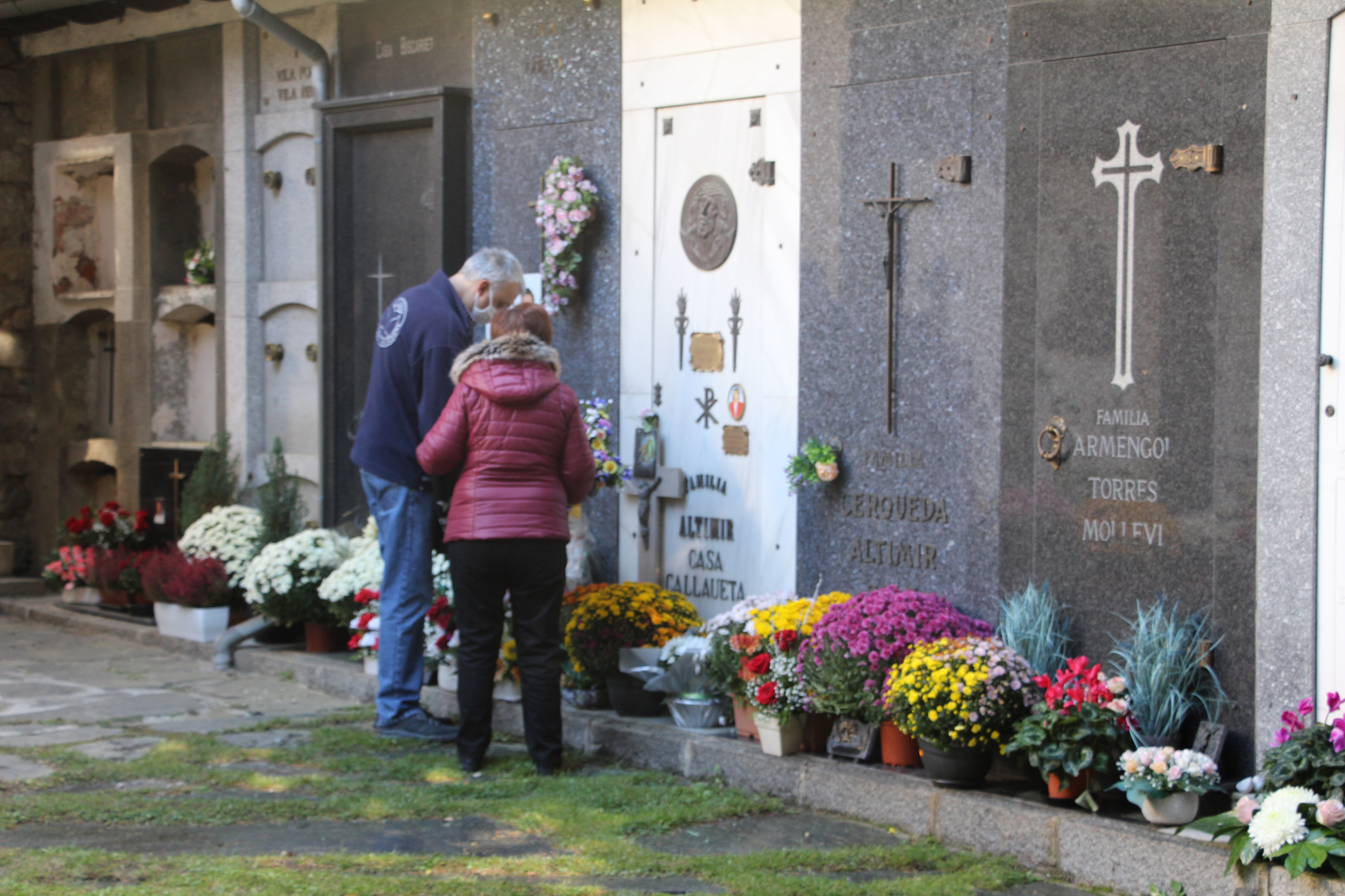 Un any més arriba el dia de Tots Sants, enguany marcat per la pandèmia de la Covid-19 i les mesures de seguretat corresponents, com el distanciament social, l'ús de mascareta i de gel hidroalcohòlic. Tot i així, els cementiris d'Andorra s'han tornat a omplir de flors i de famílies per a visitar els éssers estimats i per netejar els nínxols. Un dels treballadors del cementiri antic d'Andorra la Vella, ha assegurat que l'afluència està sent "un 5% inferior a la d'altres anys", ja que molta gent que acostuma a venir són persones grans, les quals amb la pandèmia surten menys o fins i tot, molts també es troben confinats.
