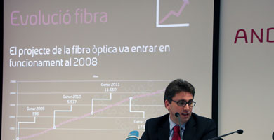 El director comercial d’Andorra Telecom, Carles Casadevall, va ser l’encarregat de presentar aquest nou avantatge que s’ofereix als clients de fibra òptica, que s’afegirà a la tarifa plana i als 300 minuts de trucades a destinacions fixes europees de què gaudien fins ara. A partir del primer de juliol els paquets de telefonia de fibra òptica de 49 i 69 euros disposaran de 30 minuts al mes de trucades a mòbils del país. Això representarà un estalvi per als clients d’entre 4 i 6 euros al mes, segons va indicar Casadevall. A més, aquests trenta minuts es tarifaran de la manera més favorable possible per a l’usuari, és a dir, per segons i “sense arrodoniment”, amb la qual cosa es pagarà per conversa real feta. De la mesura en queden exclosos, però, els paquets de fibra de telefonia mini (els de 15 euros i 39 euros mensuals). La voluntat de l’empresa parapública és que d’aquesta manera els clients s’animin a passar progressivament a la fibra òptica. Al novembre de l’any vinent es preveu que l’ADSL tingui només un mega de velocitat, segons va dir Casadevall.
