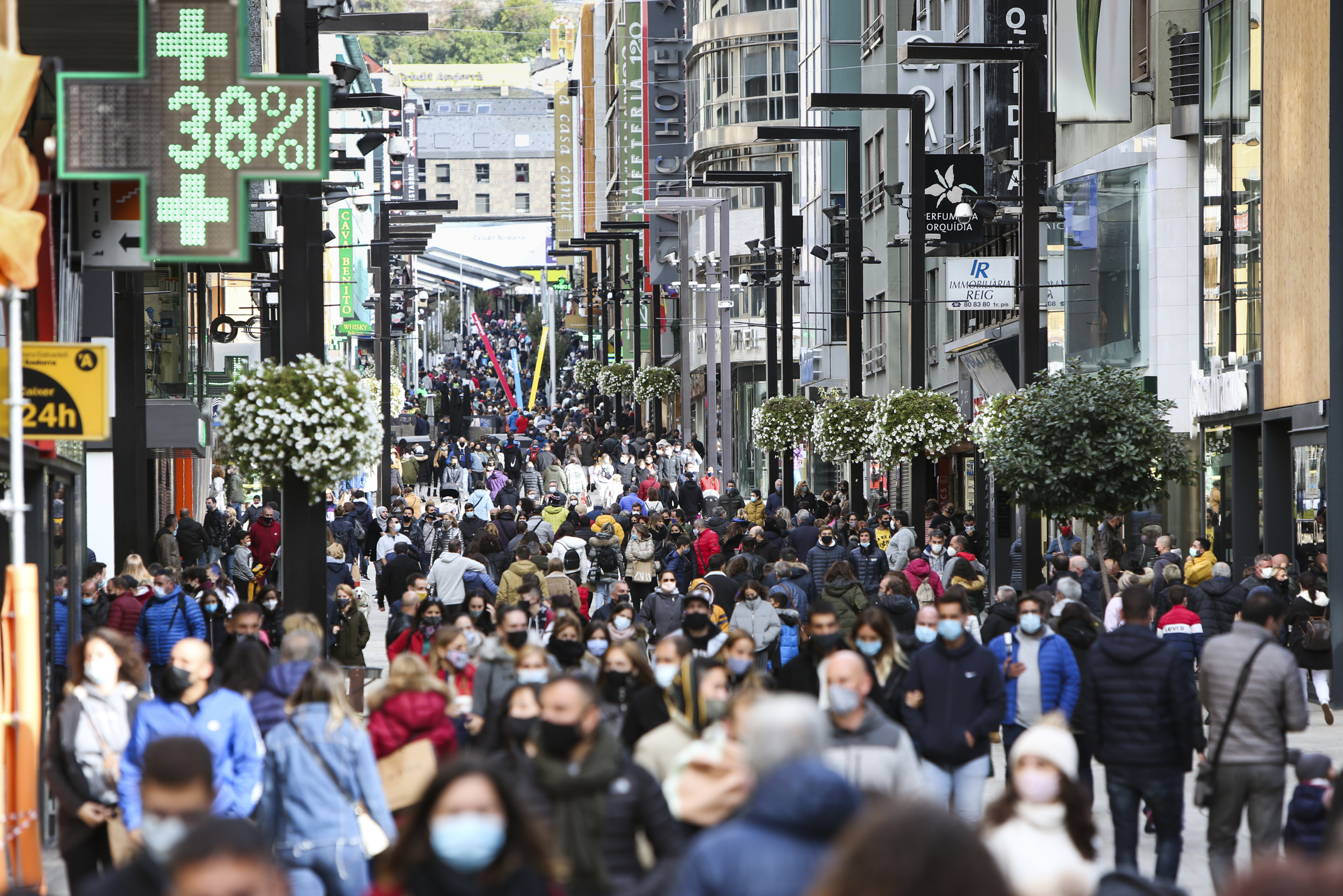 El neguit per les aglomeracions de turistes a l’eix comercial i en alguns espais naturals del país que presentaven una gran afluència va anar in crescendo a les xarxes socials sobretot des de dissabte. Una preocupació que alguns van denunciar com una “manca de previsió” de l’executiu davant una situació que es podia preveure complicada des de fa dies donat que a Espanya hi havia tres dies de festa. I és que ahir els turistes van envair les principals artèries comercials, després de fer fins a cinc quilòmetres de cua per entrar al país per la frontera sud, i van deixar per a alguns ciutadans imatges curioses com ara que la impossibilitat de seure als bars i terrasses els empenyés a ocupar l’espai públic prenent el cafè i un entrepà o unes pastes als bancs de places i carrers, en ocasions a tocar mateix de la terrassa del bar clausurada, o bé als esglaons d’algunes botigues. Hi ha qui va associar l’esmorzar al carrer com el producte de la nova normalitat. Alguns veïns, com els de la plaça Rebés a la capital, es van queixar de les deixalles (gots i plats de cartró dels típics per emportar-se) que van haver d’anar esquivant per entrar fins al portal de casa seva, per no parlar de les que es van acumular dins i fora de l’ascensor de la Quirola, una zona més allunyada de les botigues.