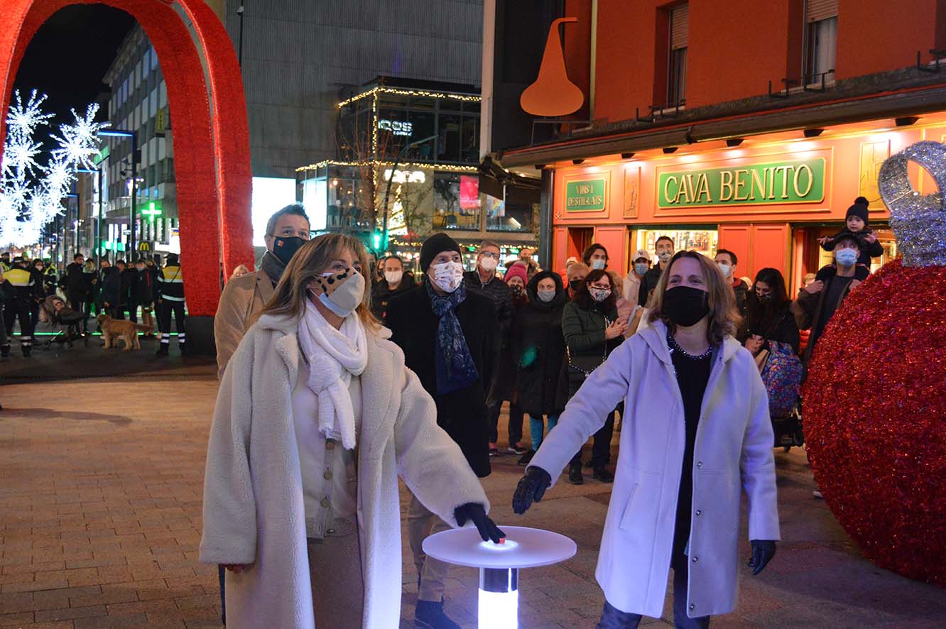 Deixar de banda rivalitats i fer una encesa conjunta que simbolitzés la necessitat de generar “il·lusió i esperança” als ciutadans. Aquest és l’acte que han volgut plasmar els comuns d’Andorra la Vella i Escaldes-Engordany fent una encesa de l’enllumenat de Nadal conjunta al carrer de la Unió en què les dues cònsols majors, la d’Andorra la Vella, Conxita Marsol, i la d’Escaldes-Engordany, Rosa Gili, han premut el botó que simbòlicament ha servit per encendre els llums que durant tot el Nadal volen aportar als ciutadans, en uns moments especialment complicats com els actuals, una mica d’esperança, tal com han manifestat les dues cònsols.