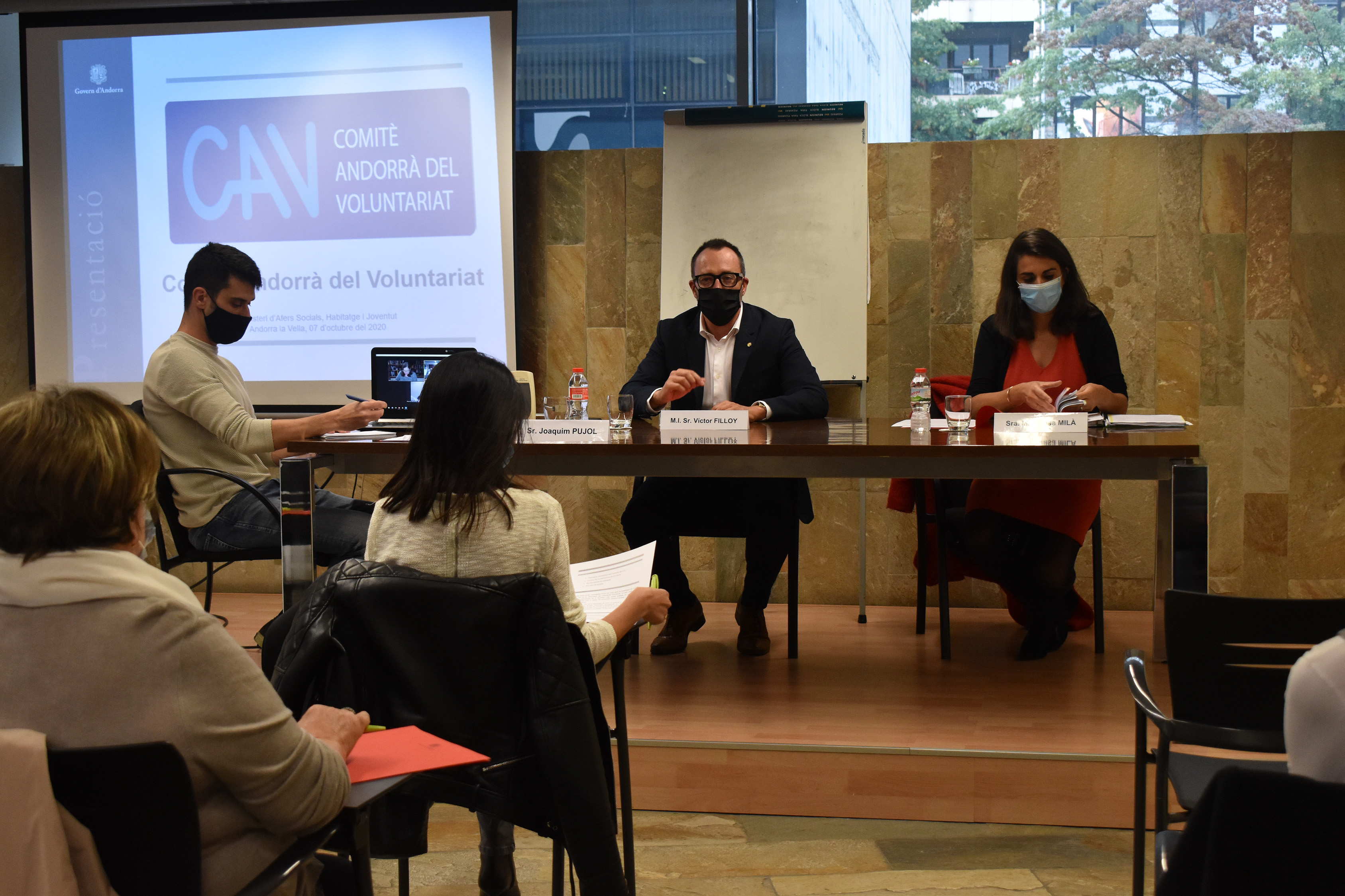 El ministre d'Afers Socials, Habitatge i Joventut, Víctor Filloy, juntament amb la secretària d'Estat, Teresa Milà, ha presidit aquest dimecres una nova reunió del Comitè Andorrà del Voluntariat (CAV), l'òrgan encarregat de promoure la participació de la societat i les seves entitats en accions de voluntariat, amb funcions de promoció, assessorament, consulta i difusió. Precisament, el ministre ha destacat la importància del CAV com a eina de diàleg i cooperació dels representants del ministeri, dels comuns, així com de les entitats de la societat civil.