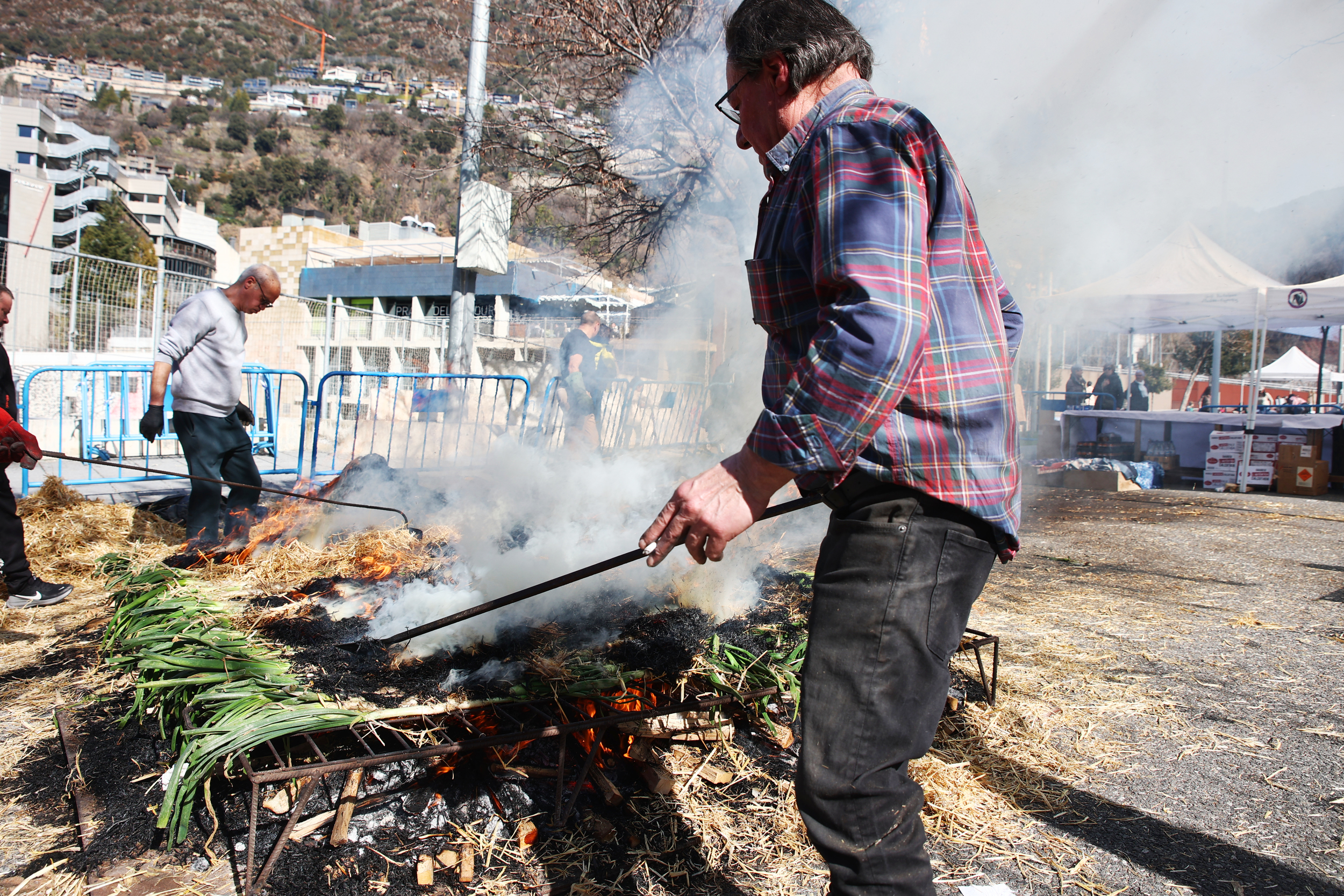 Eren les set del matí quan la foguera es va començar a preparar, però no va ser fins més tard que els calçots van entrar a les flames que els cremarien per fora i courien per dins. Bé, no són les flames qui els couen, com deuen saber, sinó el pertinent repòs embolicats en paper que han de fer el temps pertinent perquè s'estovin ben bé. I la feina que van tenir els de la Unió Pro-Turisme d'Escaldes-Engordany, ja que 10.000 calçots tenien per cuinar i cuidar abans de servir-los en 800 racions a tothom que es va apropar atret pel fum i l'olor al carrer dels Veedors. Però amb el tiquet de consumició no solament hi anaven calçots, sinó un tall de botifarra, un tros de pa, un pitet i un porró. I quin és el secret de fer una bona calçotada? Doncs per Jaume Ambor, president de la comissió, "és la gent que la fa possible". I és que una quinzena de col·laboradors es van encarregar d'aprofitar de la millor manera el clima primaveral que va envair el país de manera excepcional, i van vetllar perquè tothom rebés el seu plat i se'l pogués menjar, ja fos a les taules que havien preparat o per allà estirats al prat. El cas era menjar-ne, on fos i com fos. I si a més els acompanya un porró, doncs millor que millor!