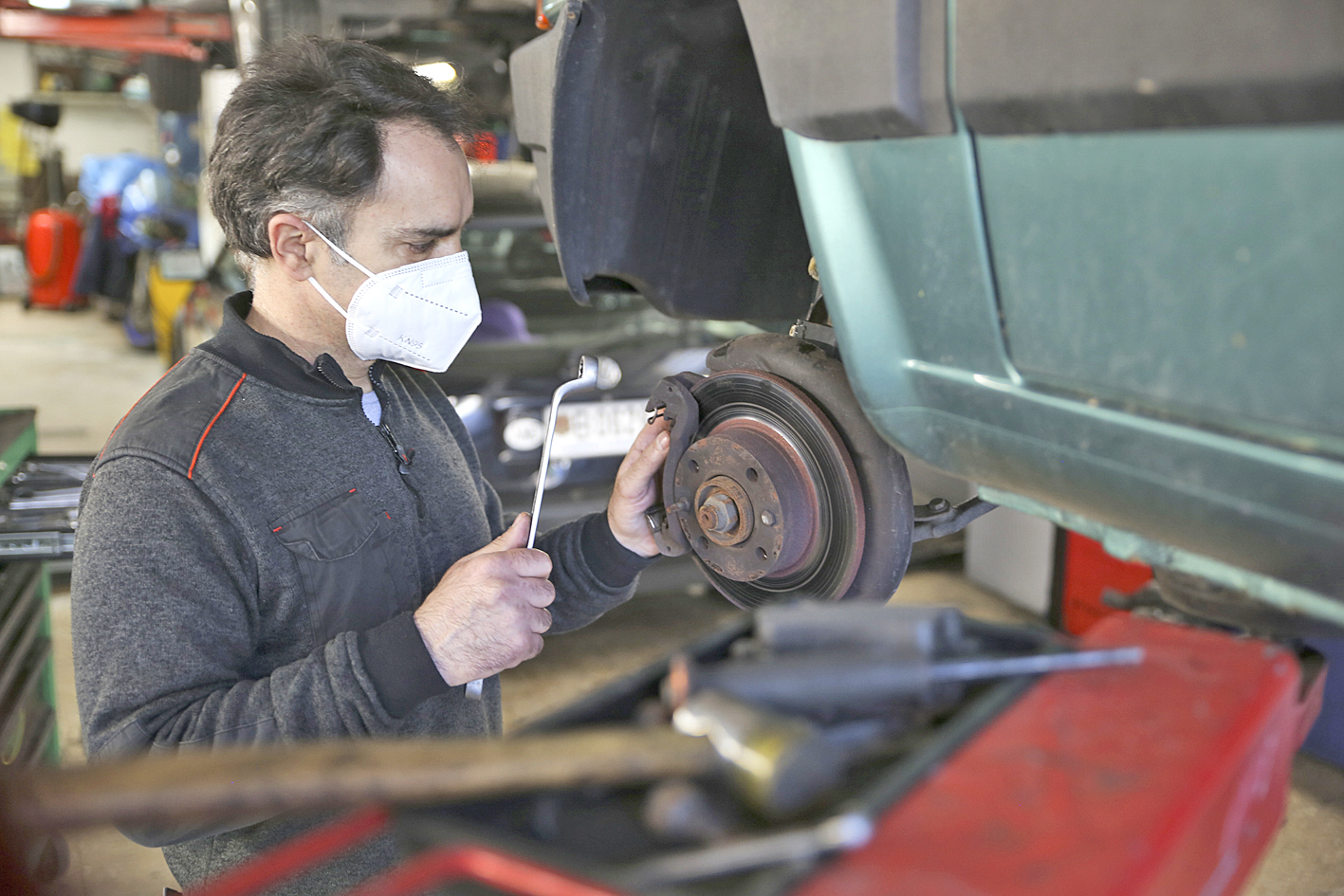 Adaptar-se a les noves mesures exigides per evitar contagis no ha estat particularment difícil, admet: el taller té una superfície prou àmplia com perquè els dos mecànics treballin molt lluny l’un de l’altre, de fet, cadascun en una nau. “Soc jo qui m’he de moure per dins, però vaig amb mascareta, encara que t’ofegues i és un rollo, i desinfectem contínuament.”