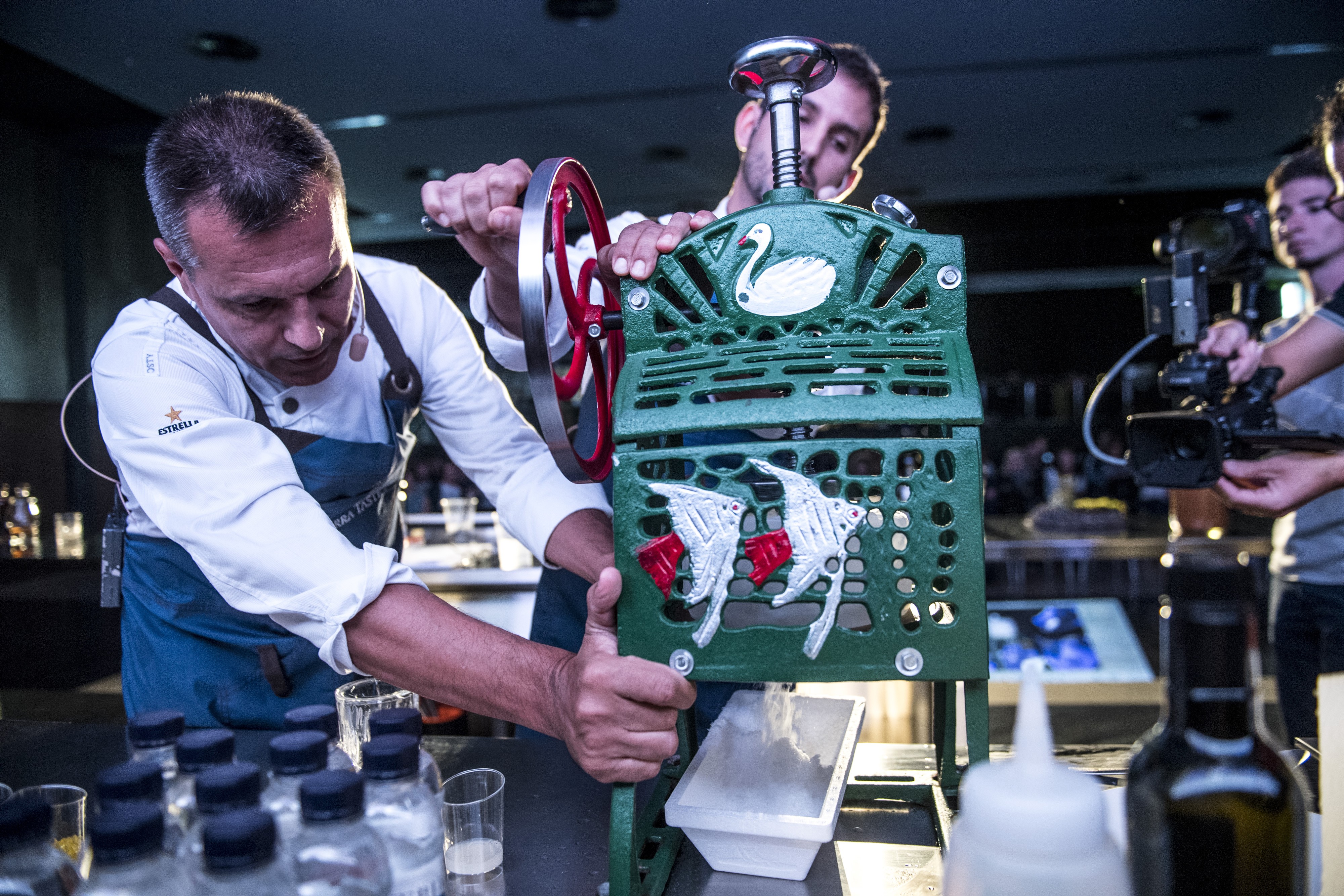 El cuiner català va preparar la ponència basant-se en l’entorn d’Andorra, i a l’escenari del Prat del Roure va mostrar un vodka de ceps, va construir un plat amb pinyes caramel·litzades i germinacions de pi, i va fer una xocolata de saüc, un ingredient que fa anys que es feia servir a la muntanya per curar els refredats. “Teniu un entorn que és un gran actiu i està ple d’elements que potser ara mateix no es veuen com a ingredients però que potencialment ho són. A la cuina el primer que cal fer, siguis on siguis, és entendre on ets i fer una reflexió per mostrar-ho als plats, al menjar i més enllà. Nosaltres la recepta de la neu l’hem servit en un plat que recorda la muntanya i que l’hem fet fer expressament a un ceramista. Hi ha una reflexió al darrere”.