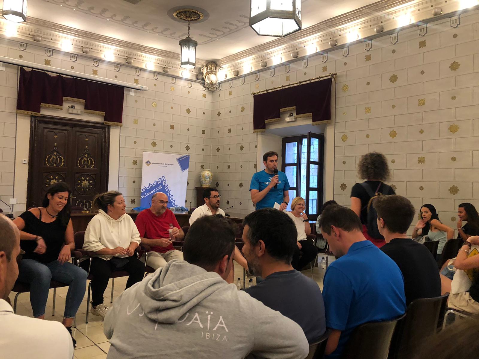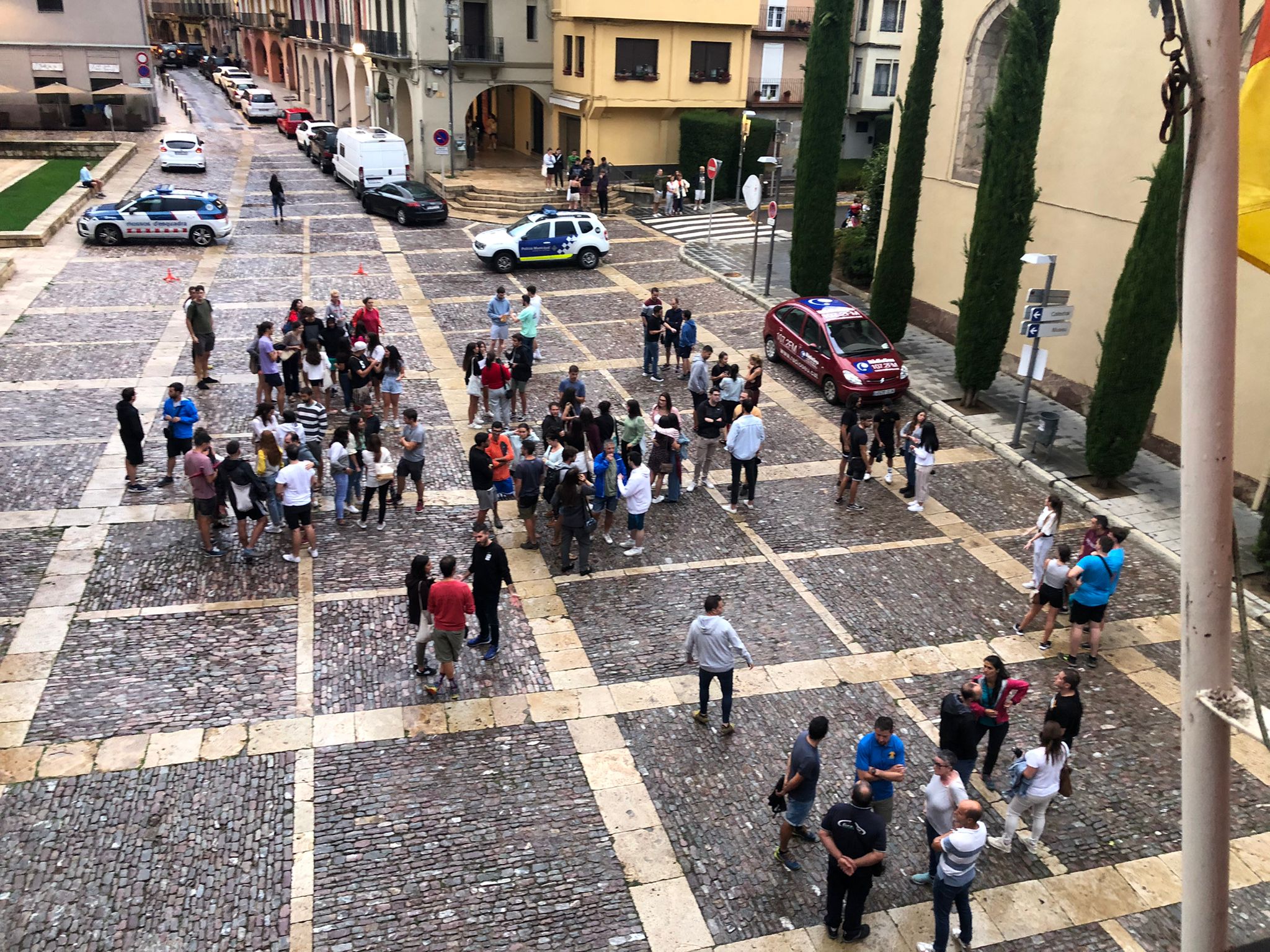 La trobada, celebrada a partir de les vuit del vespre, ha estat seguida per un grup de joves que, malgrat la pluja acabada de caure, es va concentrar a l'exterior, a la plaça dels Oms.
