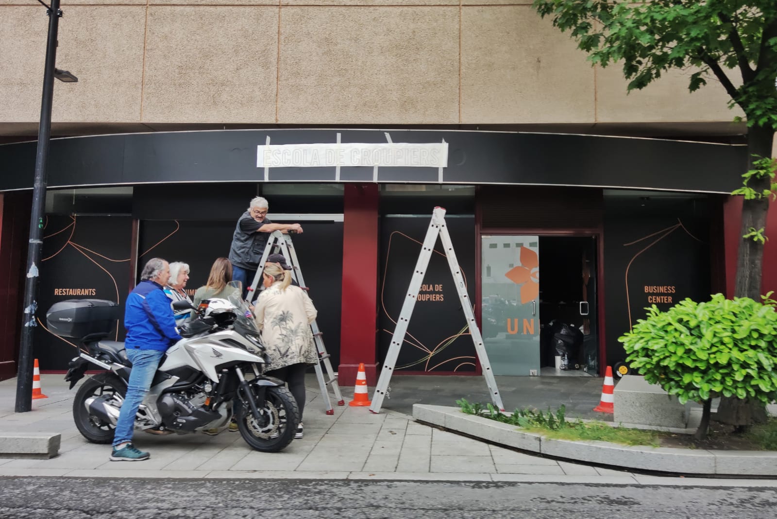 Ja fa uns dies que hi tornava a haver moviment a l'interior del local. I des d'avui ja es pot veure als vidres que feien abans d'aparadors el logotip d'Unnic i els vínils amb els rètols en els quals es pot llegir: Escola de croupiers, Bussines Center i Restaurant.