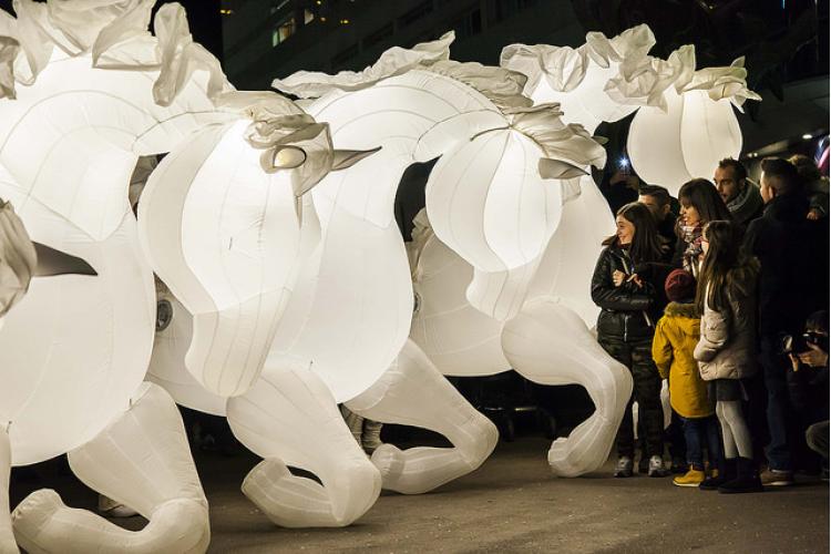 Un dels elements més destacats d’aquests dies serà, d’altra banda, l’espectacle itinerant de gran format que recorrerà dilluns a la tarda, a partir de les 18.30 h, l’avinguda Meritxell des del carrer de la Unió fins a la plaça Príncep Benlloch. En aquesta ocasió, la companyia francesa des Quidams porta per quart any consecutiu el muntatge Fiers à Cheval, protagonitzat per un grup de cavalls blancs lluminosos i que ja s’ha convertit en tot un element identificatiu del Poblet de Nadal.