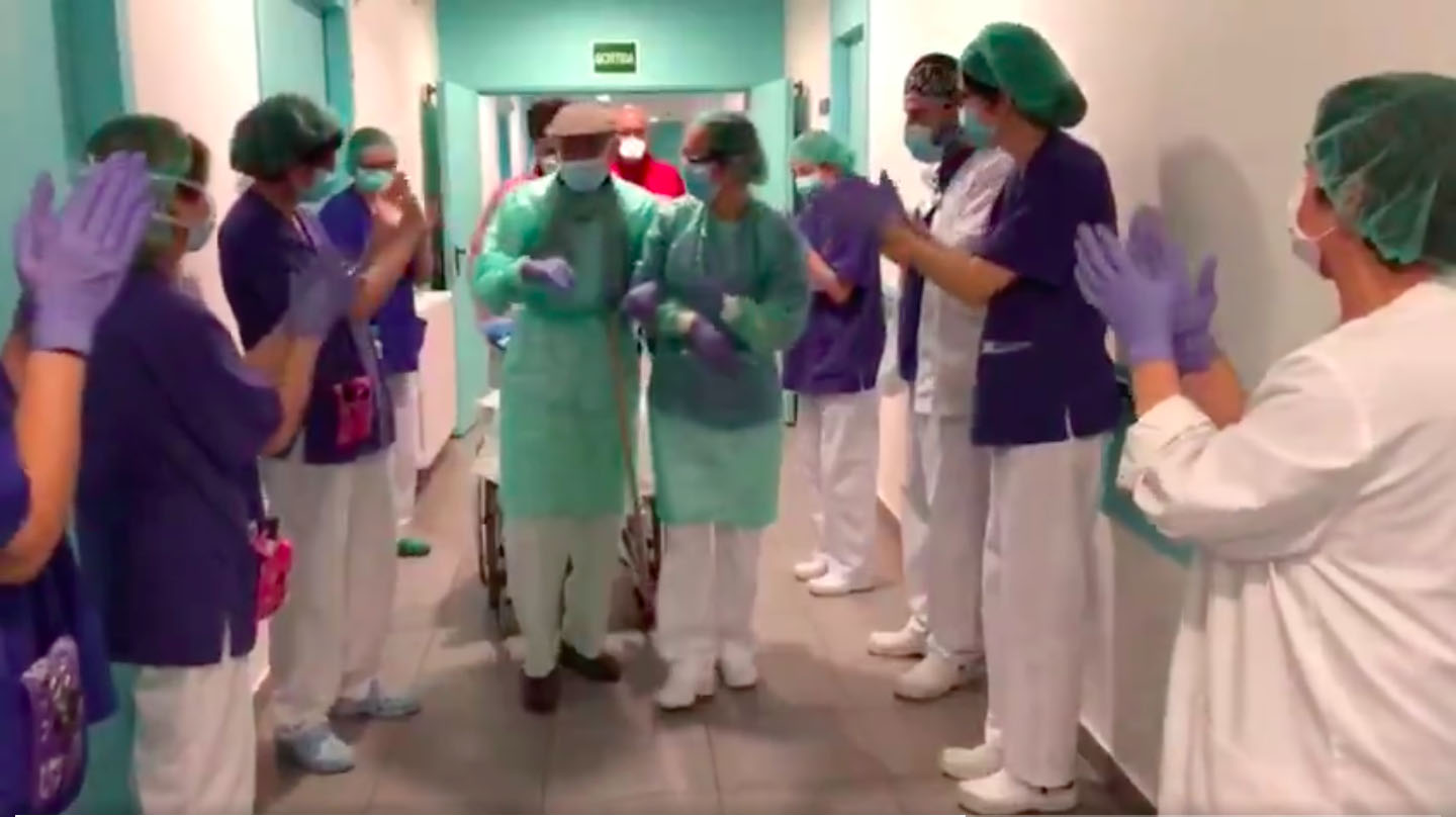 Tal com es pot veure en el vídeo que acompanya la notícia, el pacient ha sortit pel seu propi peu, acompanyat això sí de personal sanitari, i en mig d'aplaudiments d'altres treballadors del centre hospitalari.
