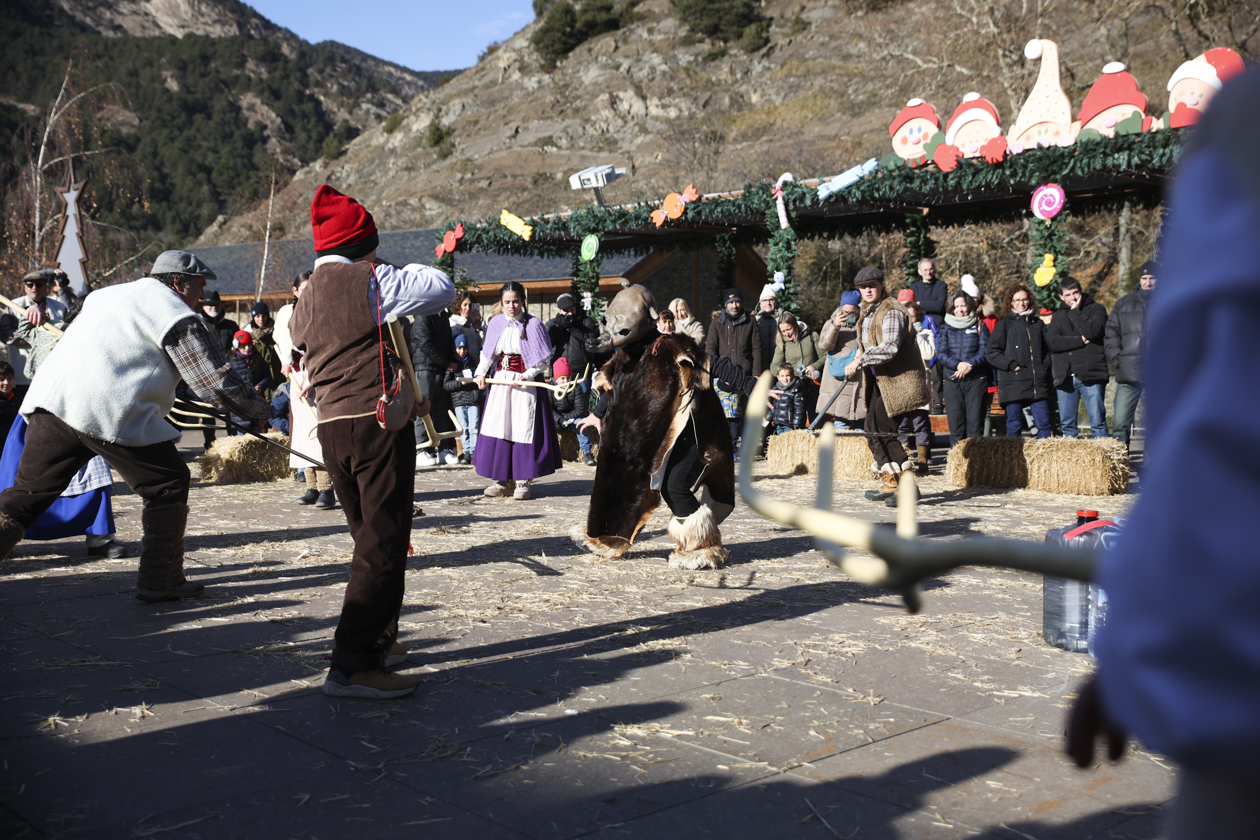 Avui ha estat un dia molt especial per a Ordino, ja que era la primera vegada que es representava la tradicional farsa burlesca L’Ossa d’Ordino com a Patrimoni cultural immaterial de la humanitat de la Unesco. Precisament, el president de l’Associació de Cultura Popular d’Ordino, Albert Roig, ha fet un parlament previ a l’obra per posar en relleu aquesta fita aconseguida i la importància d’haver aconseguit, per fi, aquesta candidatura internacional. Al llarg de la representació, com és habitual, s'ha criticat la situació política i social del país i de la parròquia. El primer a rebre ha estat el cònsol major, Josep Àngel Mortés, i la seva proposta per la ubicació del futur geriàtric a la parròquia. “Geriàtric Mortés, aquí no hi entres si no tens molts... però que molts diners”, deia un dallaire, mentre que un altre afegia que al centre “vindran russos de pasta, anglesos forrats, ferrarimans, youtubers jubilats i tutiquanti que ens donaran molts calerons...”. Aquesta no ha estat l’única referència envers l’aparent predilecció que té el Comú per donar preferència a les construccions de luxe, abans del benestar i les necessitats de la ciutadania de classe mitjana. Precisament, en relació amb la situació del país i de la parròquia, s'ha fet mofa al creixement urbanístic. “A l’escola ja no estudiem la Reserva de la Biosfera, sinó la Reserva de la Cons-truc-fe-ra”, deia un petit dallaire. Un altre conseller que ha estat objecte de burla ha sigut Jean-Michel Armengol, de Movem Ordino, dient que “de moure moure, només mou el braç per jugar a la petanca”. Finalment, l’aire d’Ordino, l’abastiment d’aigua i, per descomptat, el futur centre d’investigació Grifols també han sigut objecte de mofa. En aquest darrer, fins i tot s'han repartit papers entre el públic amb la inscripció “RIFULS, títol d’accionariat, ja us hem ben enredat”. D’altra banda, també s'ha representat de forma caricaturesca, amb una perruca rossa i robes elegants, la cònsol menor, Eva Choy, a qui se l'ha titllat de “posturetis” que “només surt del despatx a veure quin acte fan per poder sortir a la foto”.